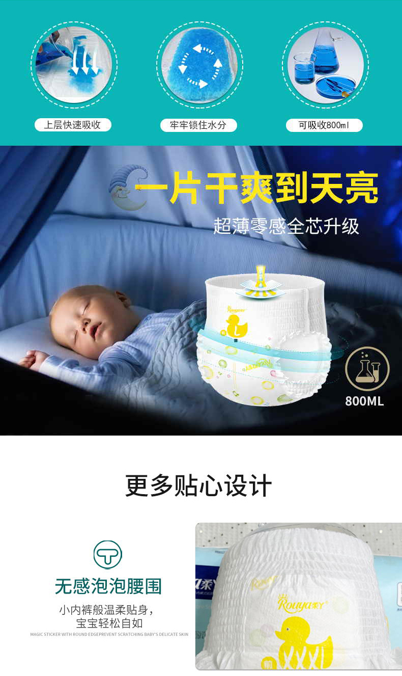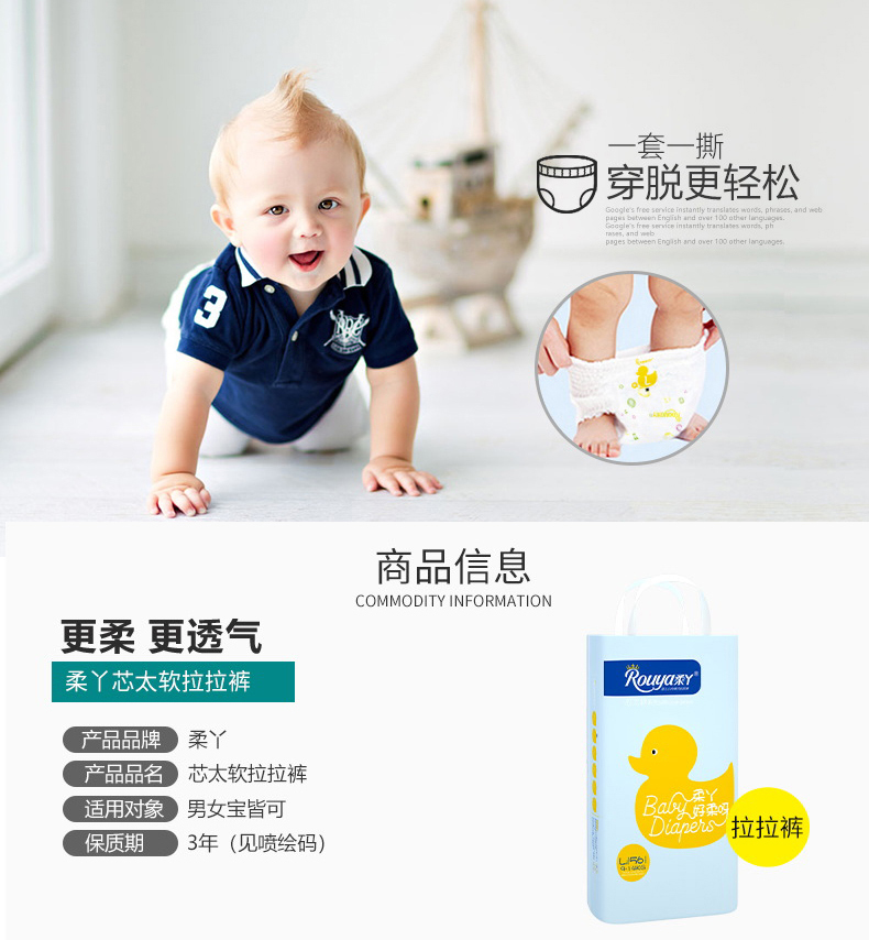 柔丫芯太软纸尿裤婴儿拉拉裤医护级宝宝尿不湿超薄透气柔软