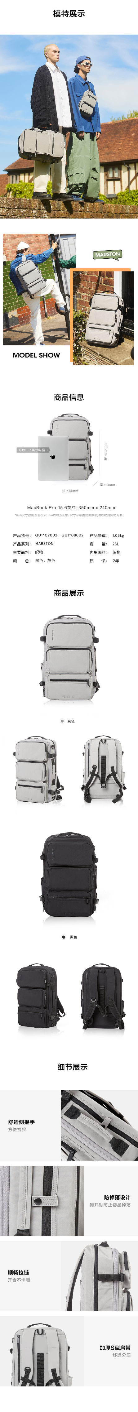 新秀丽MARSTON系列多功能双肩包QU1*002