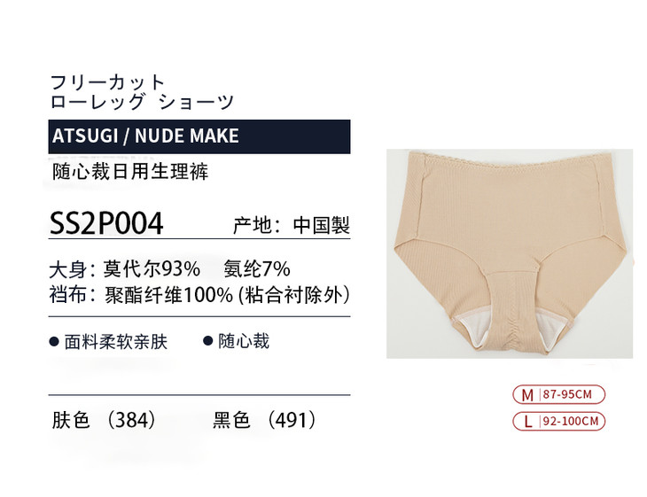 日本ATSUGI/莫代尔随心裁日用生理裤2P004