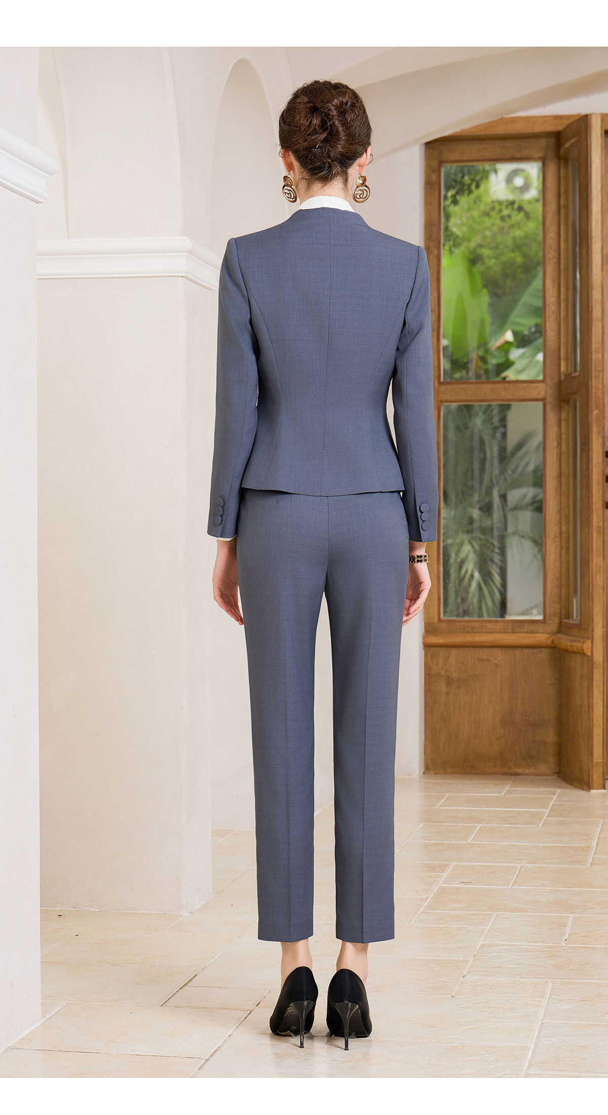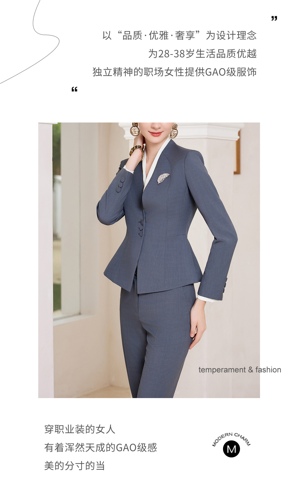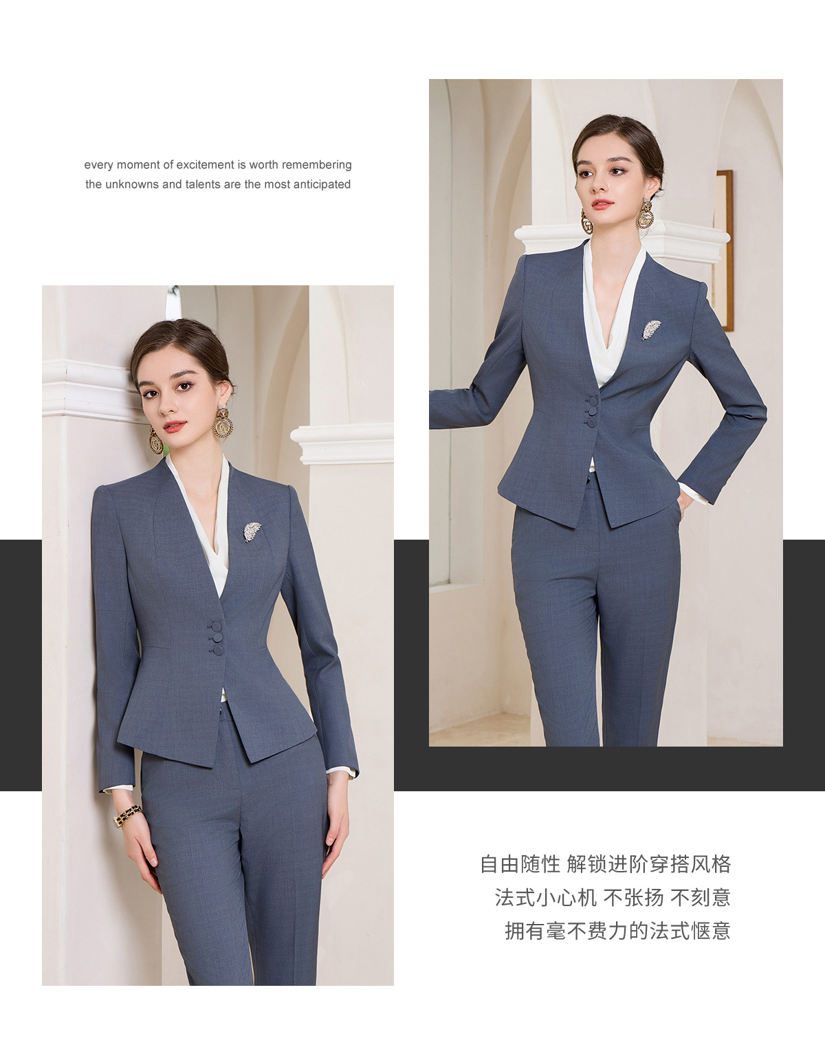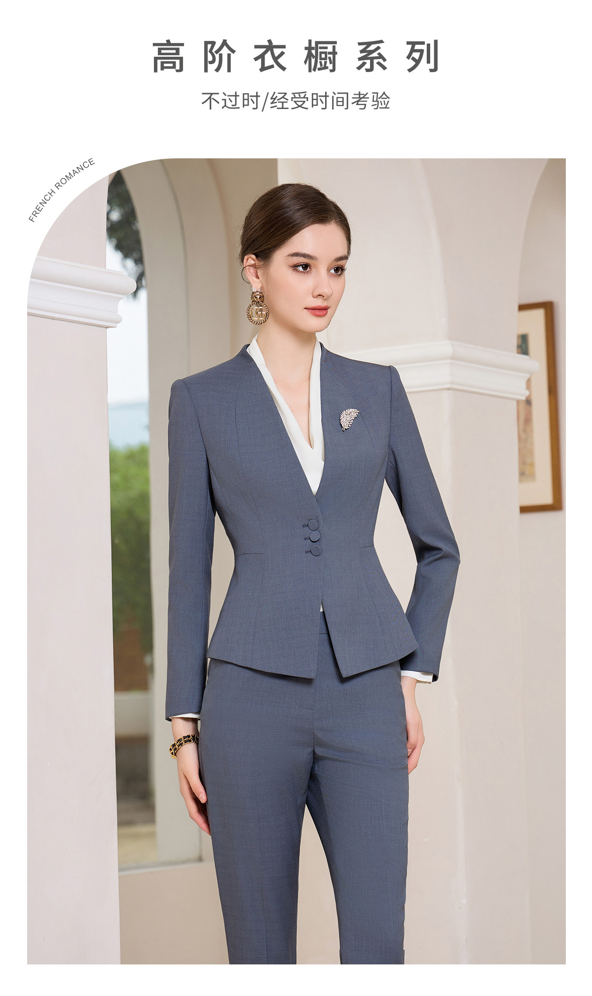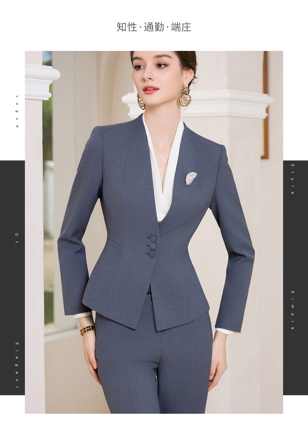 IWY/灰蓝色秋冬职业西服套装女售楼部工装气质西服两件套修身工装CP1858