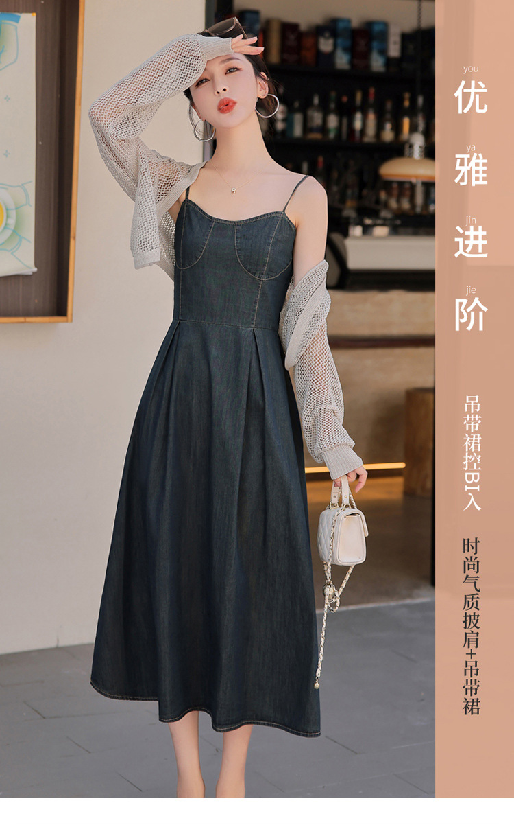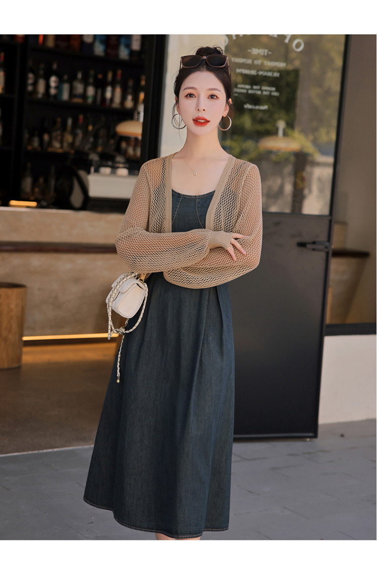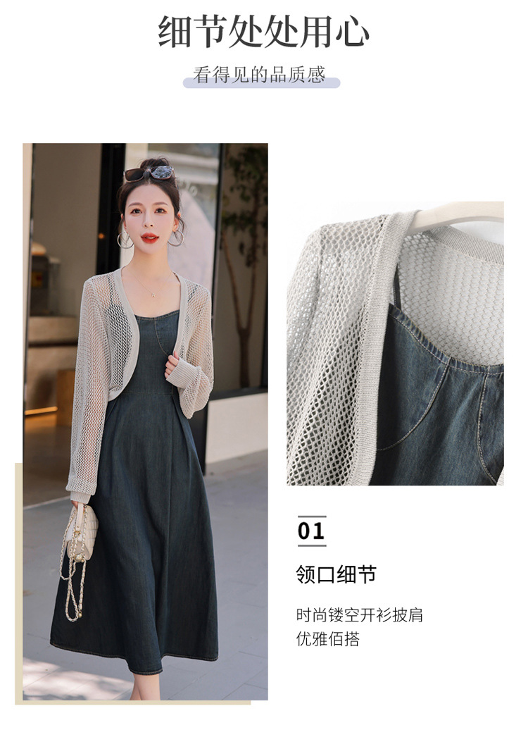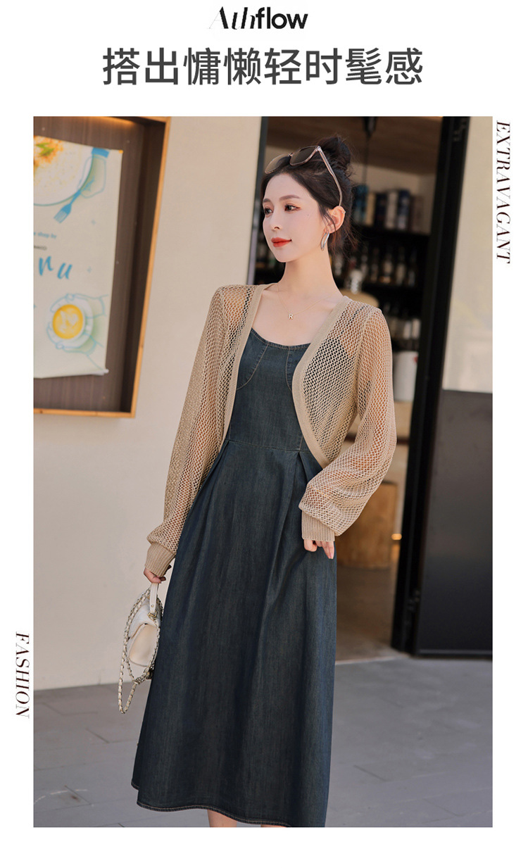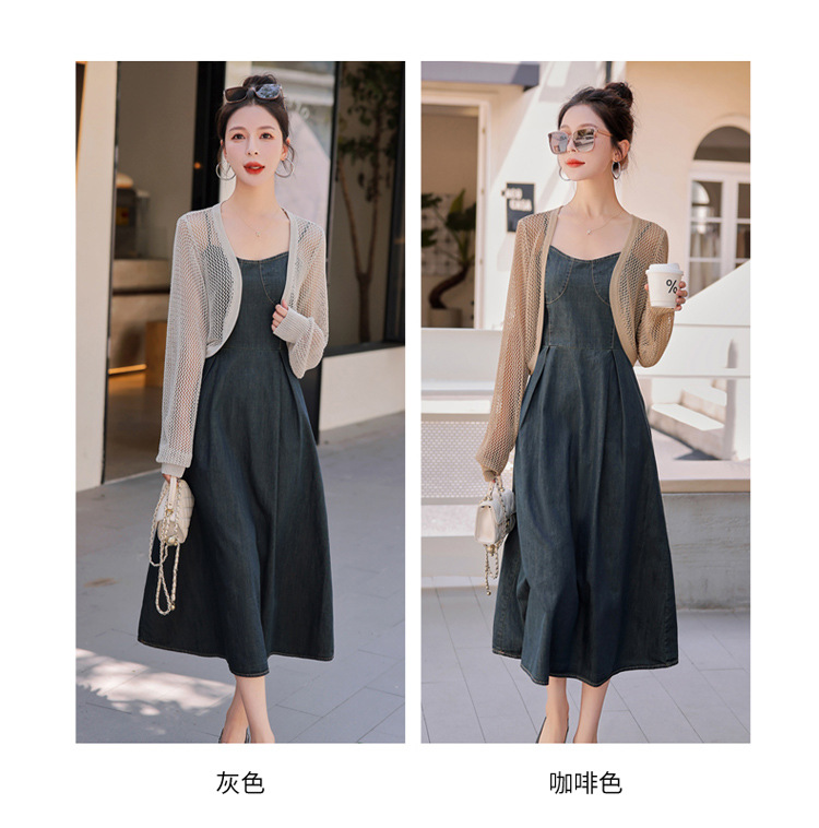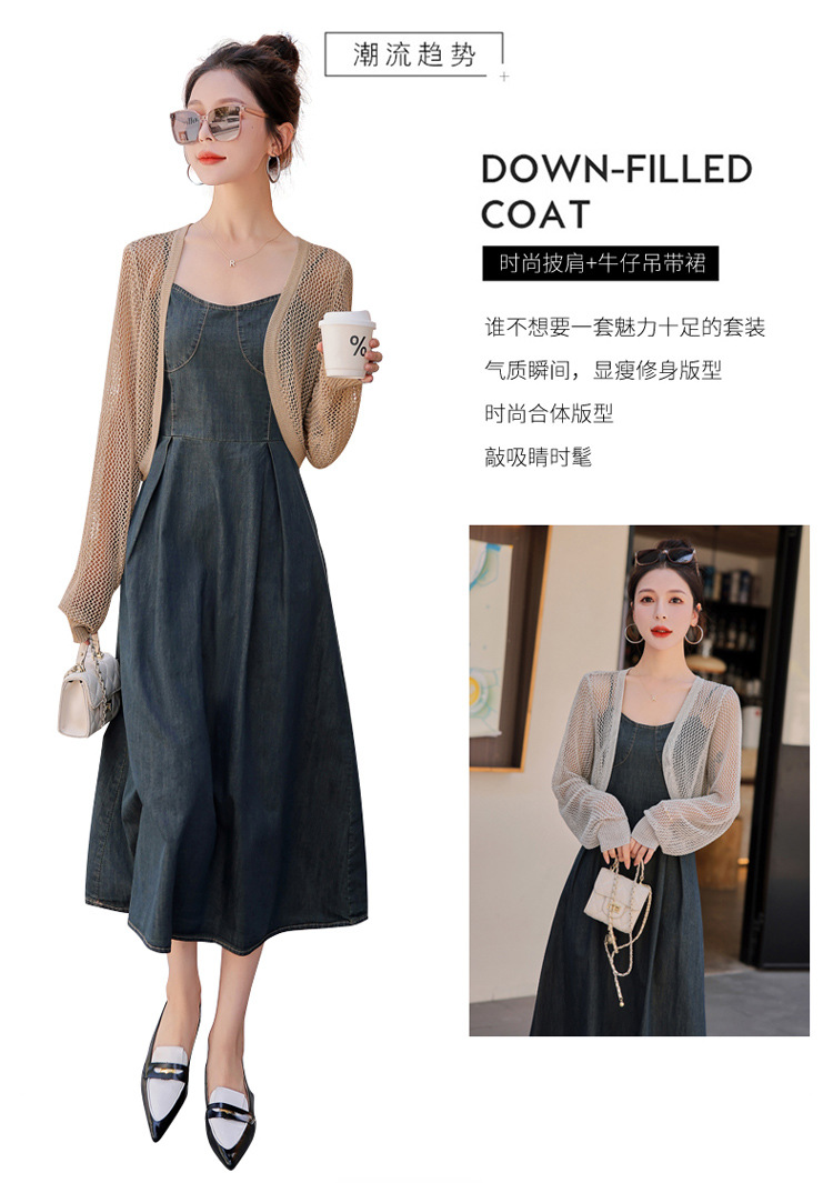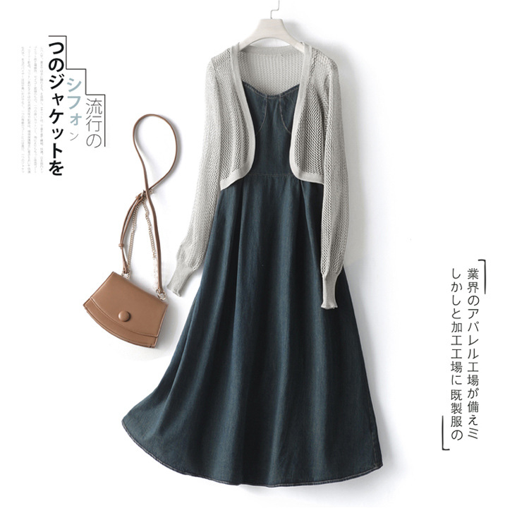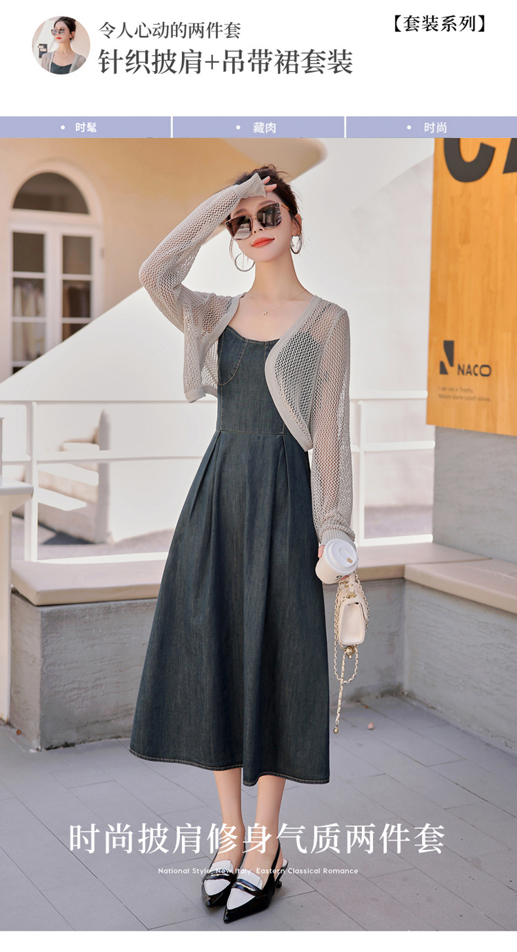 时尚休闲外搭纯色针织,小披肩牛仔吊带连衣裙两件套HR-YKSL606