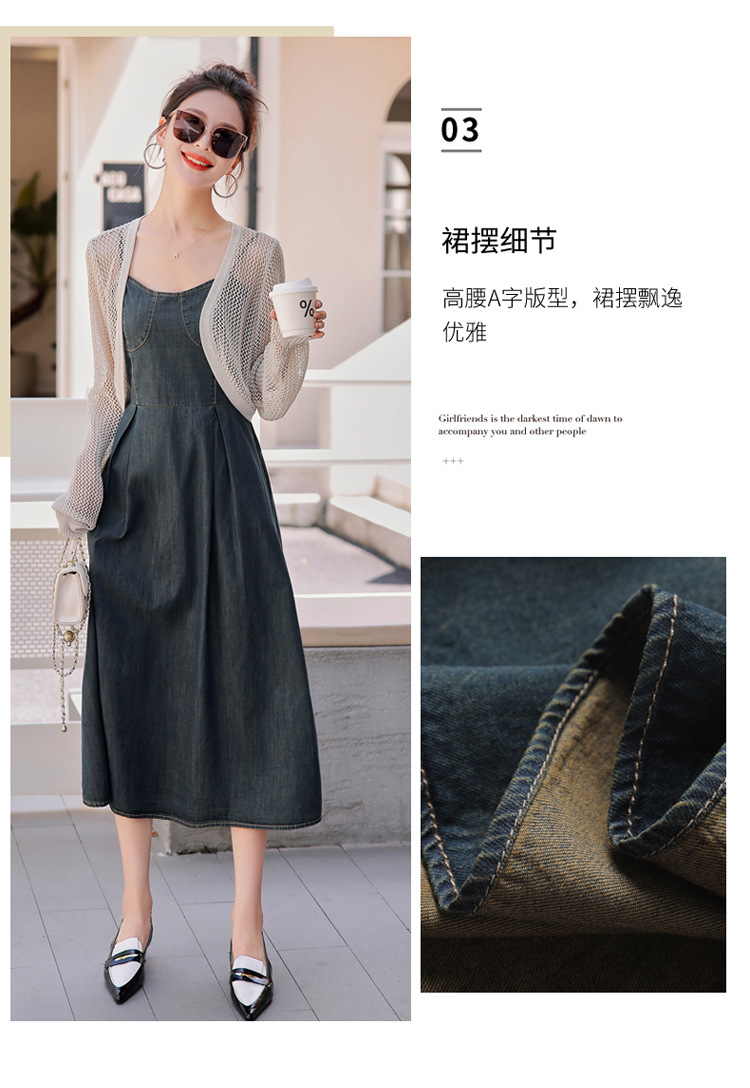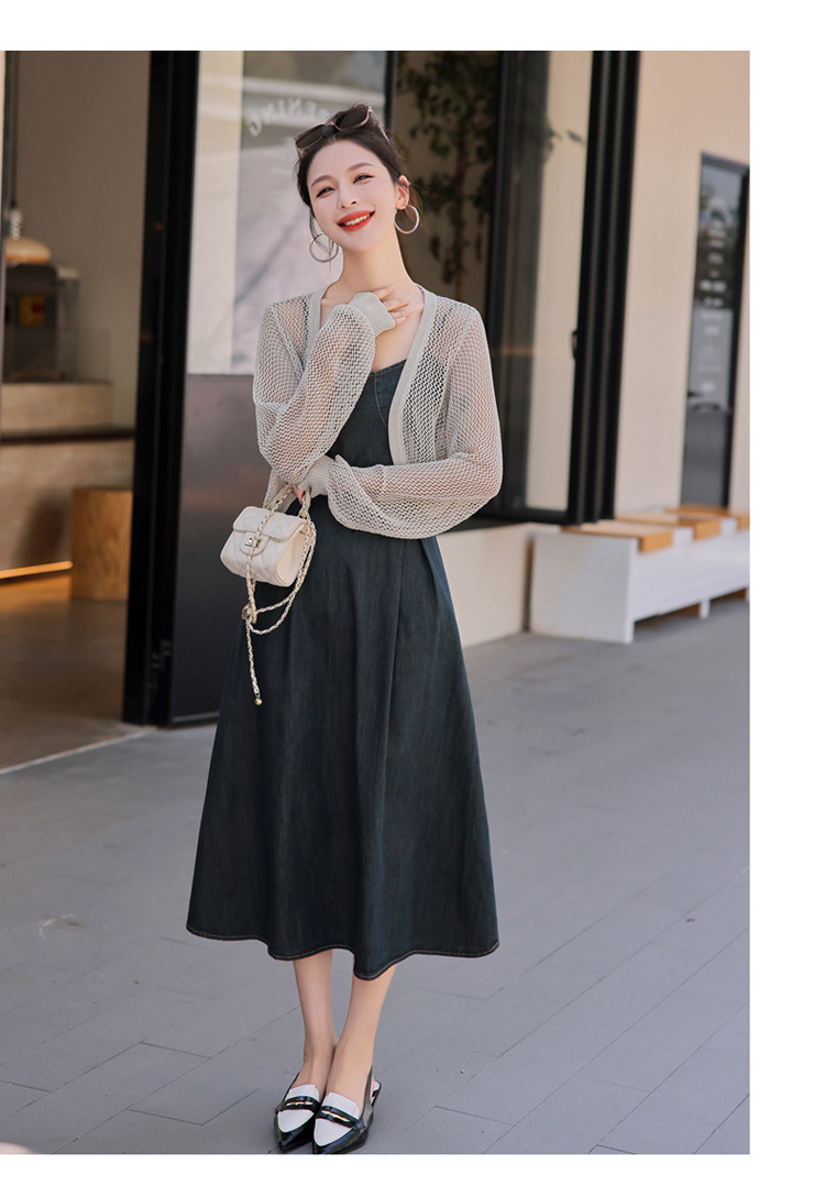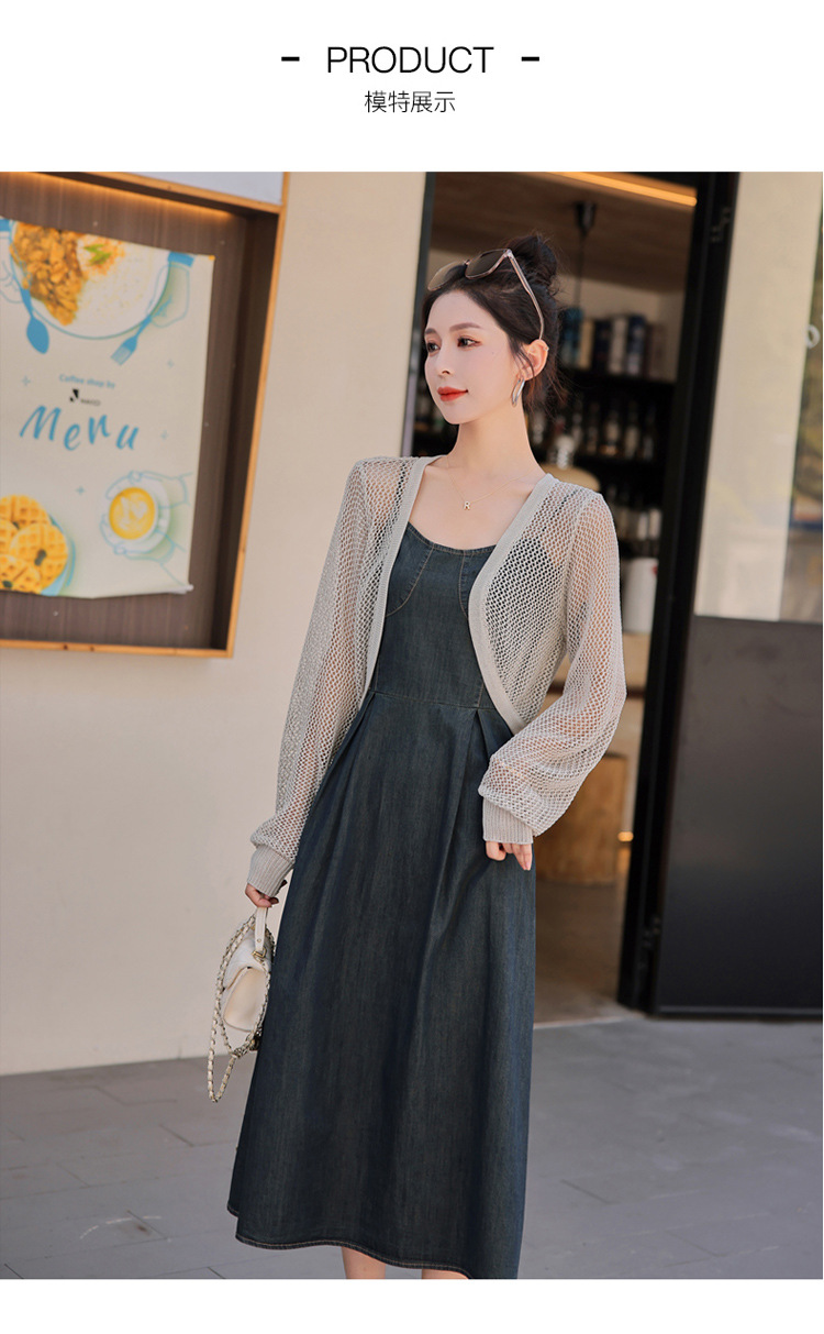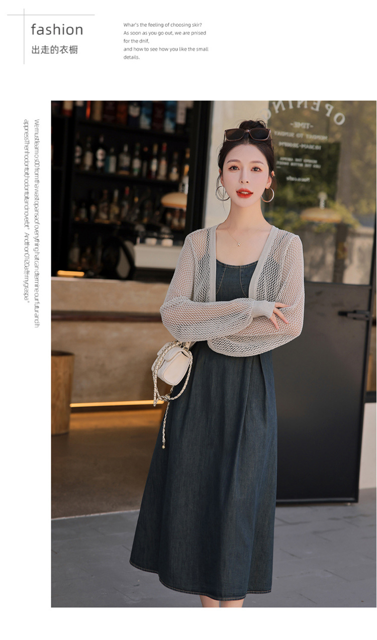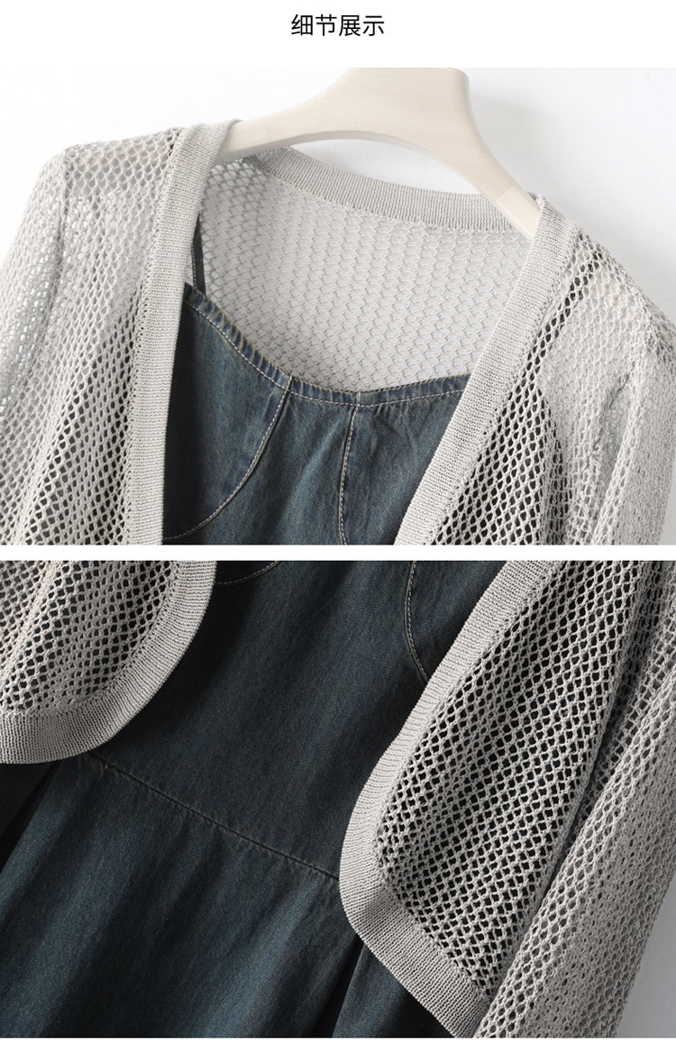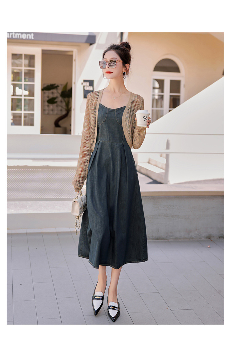 时尚休闲外搭纯色针织,小披肩牛仔吊带连衣裙两件套HR-YKSL606