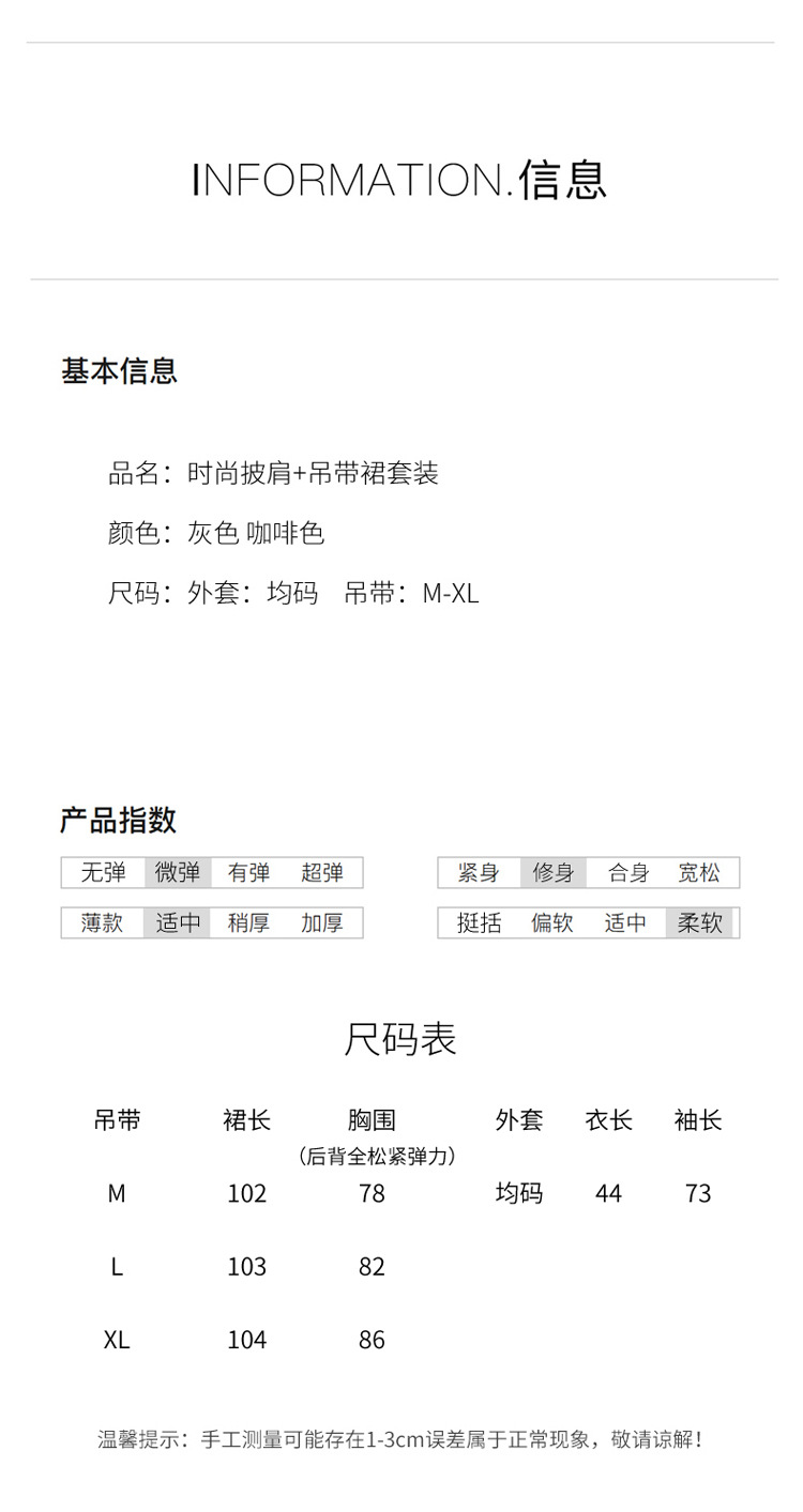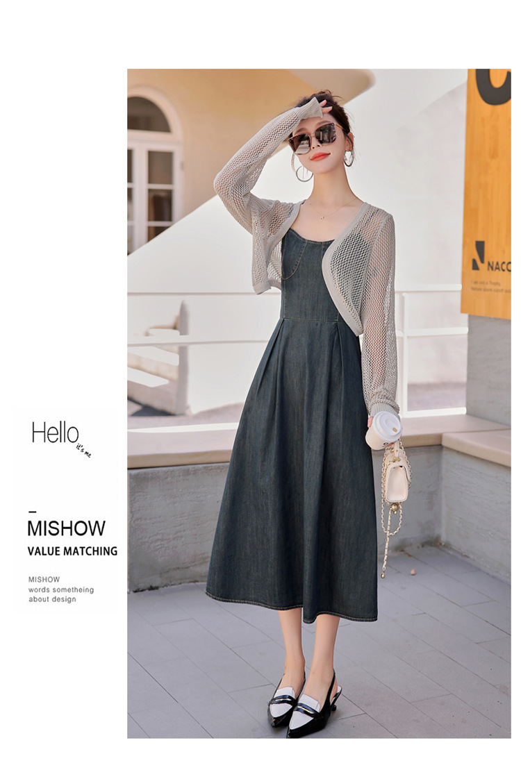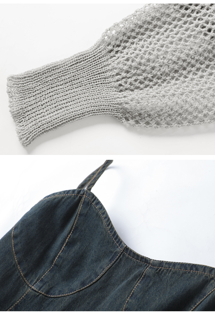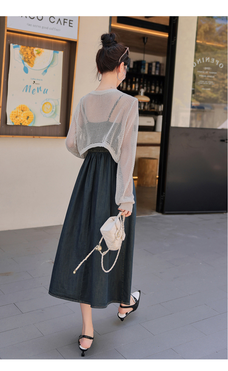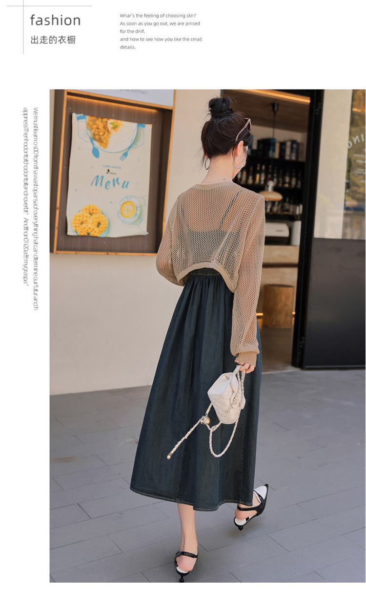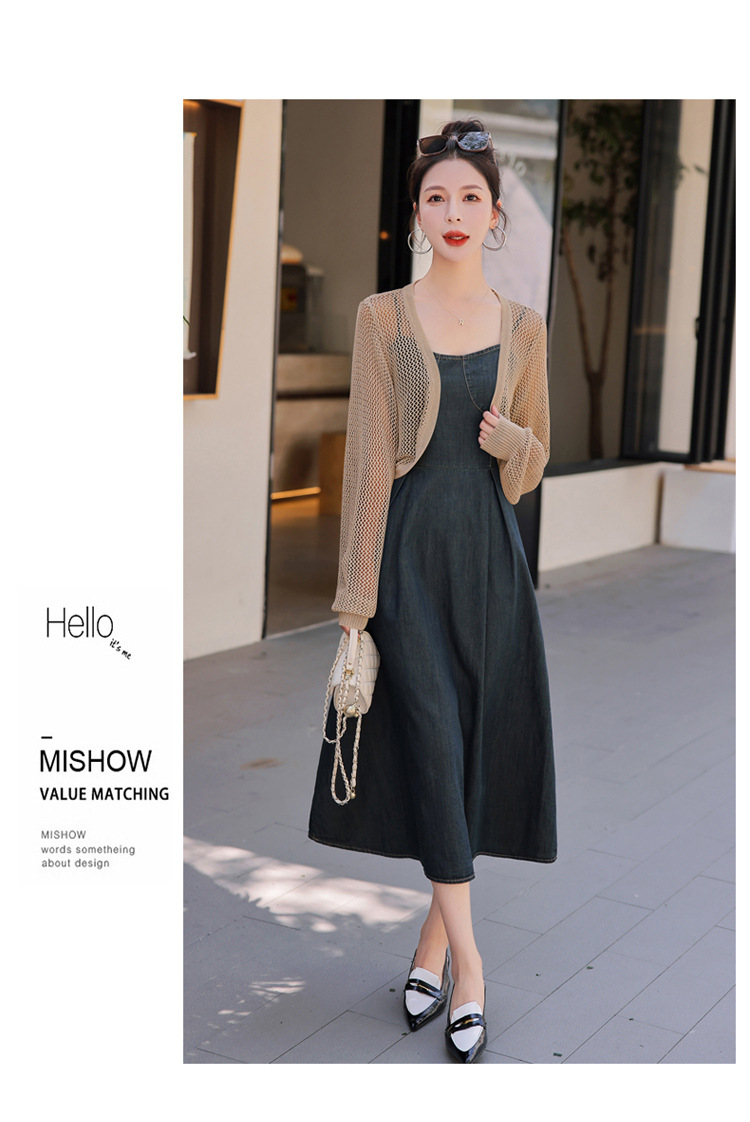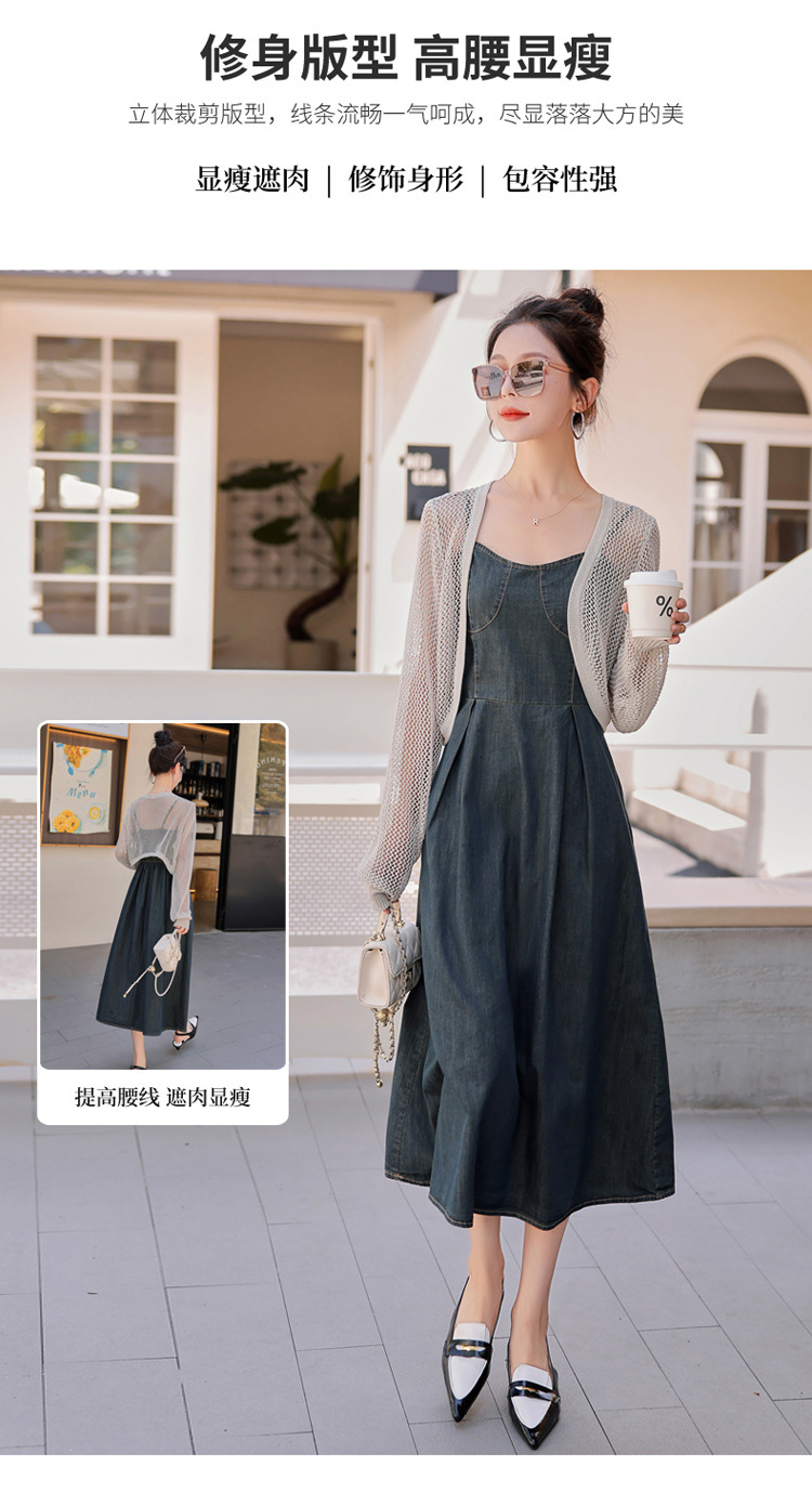 时尚休闲外搭纯色针织,小披肩牛仔吊带连衣裙两件套HR-YKSL606