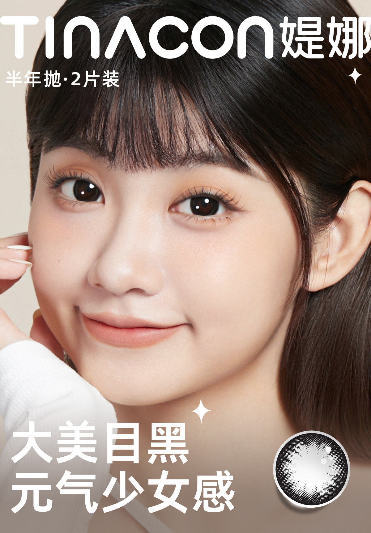 【媞娜半年抛,买4赠1】Tina媞娜美瞳大美目黑色大直径彩色隐形眼镜半年抛缇娜素颜学生党