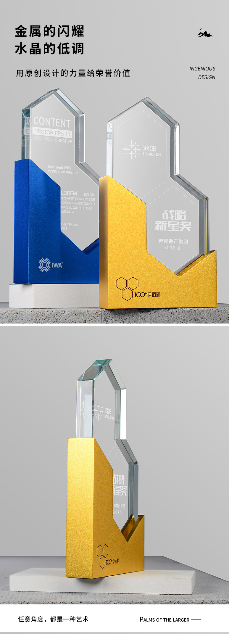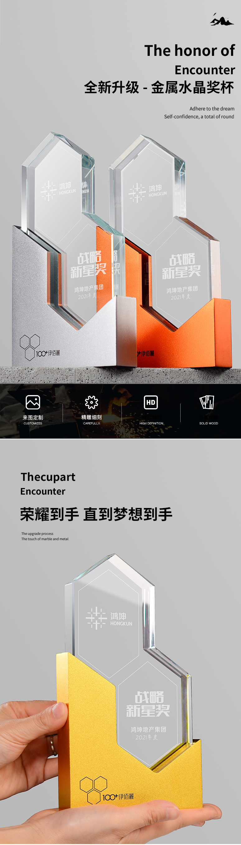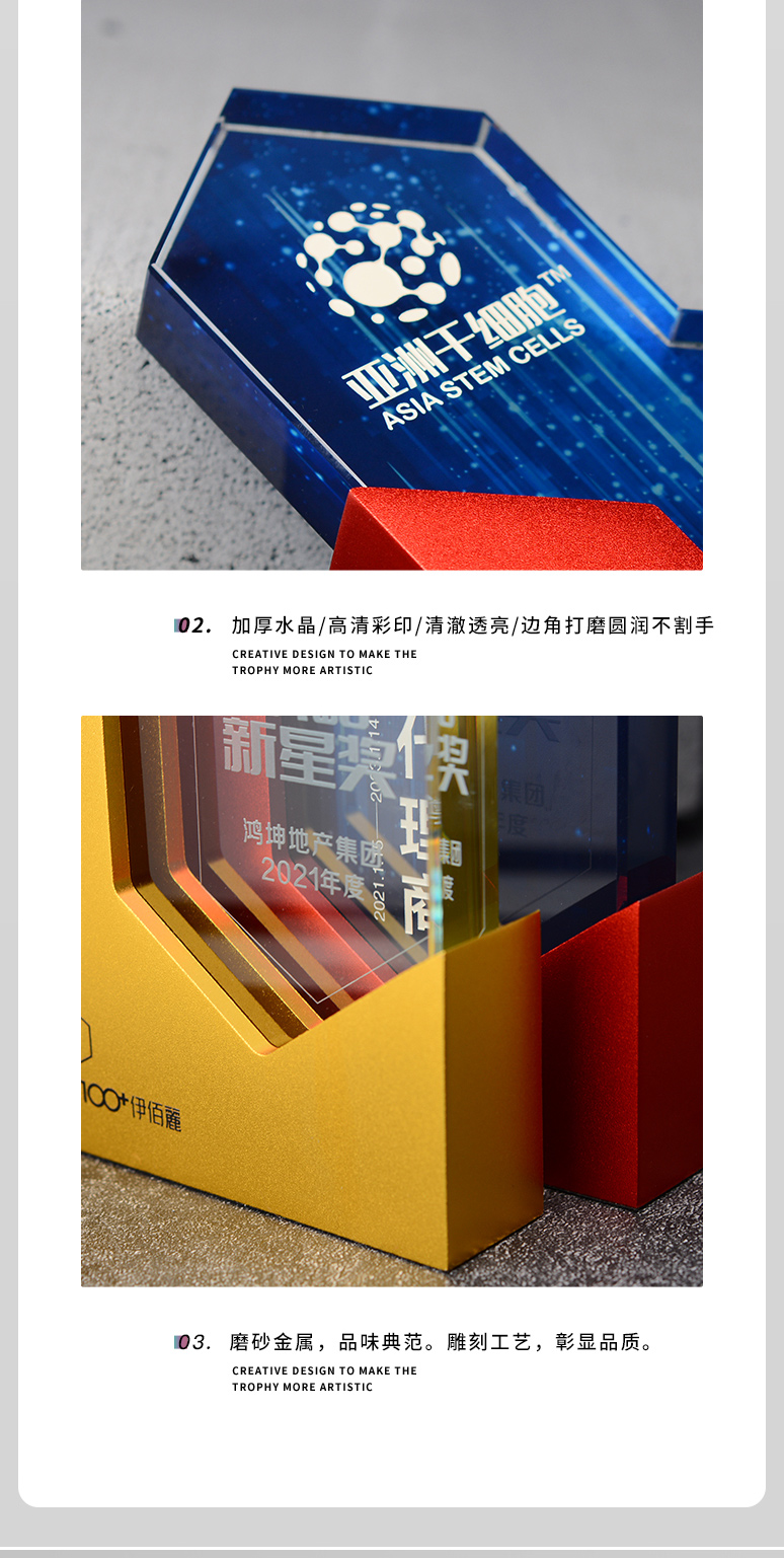 金银铜金属水晶奖杯定制创意高档大气团队冠军荣誉奖牌颁奖纪念品