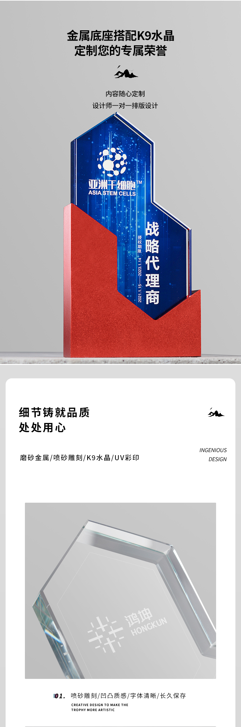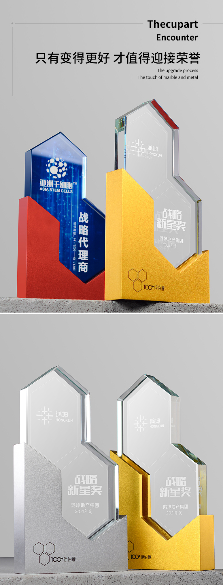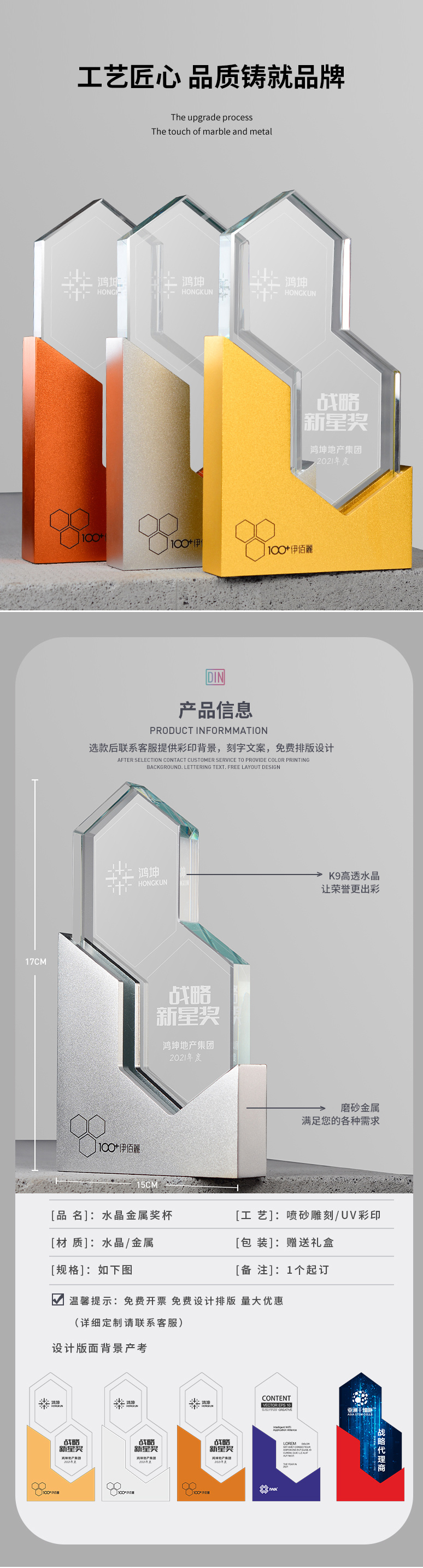 金银铜金属水晶奖杯定制创意高档大气团队冠军荣誉奖牌颁奖纪念品
