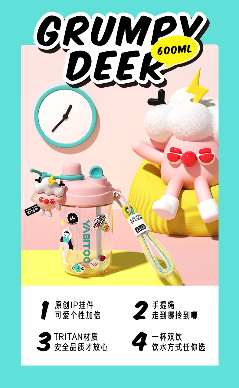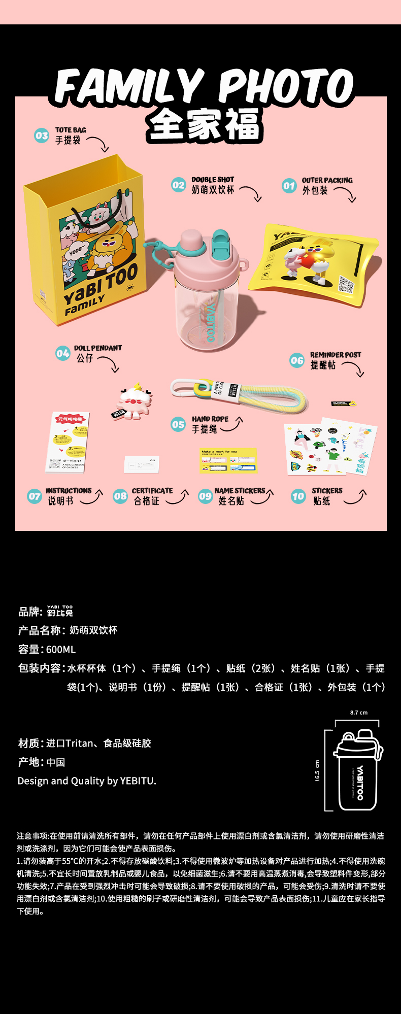【野比兔】奶萌双饮杯,一杯双饮,解锁多种饮水方式,高颜值原创 IP公仔挂件,四色可选,满足各种审美需求,手提绳设计,走哪提哪