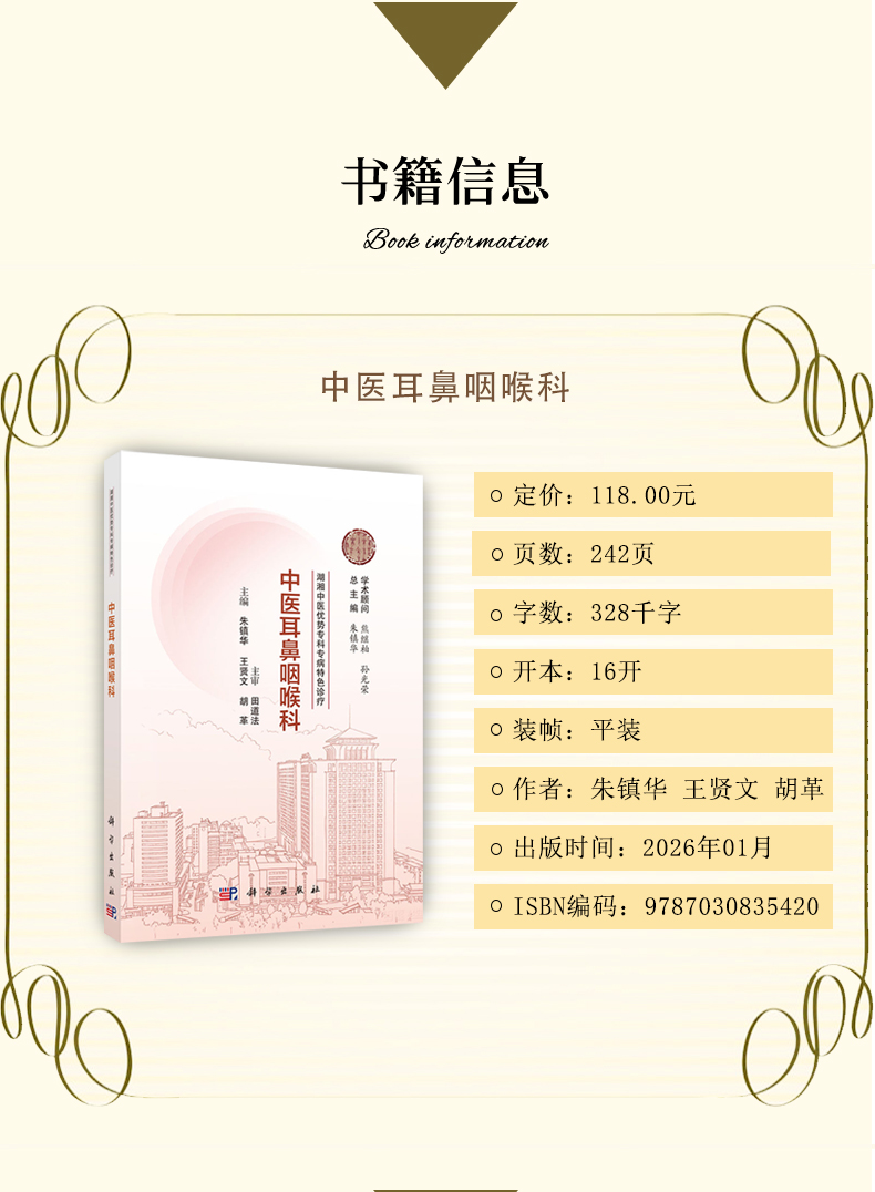 中医耳鼻咽喉科 湖湘中医优势专科专病特色诊疗 朱镇华 王贤文 胡革 主编 中医、中西医结合人员和中医院校学生 科学出版社