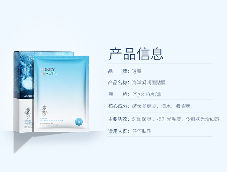 [海洋面膜]【9.9元特价丨29.7元任选3件 | 单笔满59元送卡皮巴拉迷你收纳包】透蜜 海洋凝润面贴膜单片装*5片
