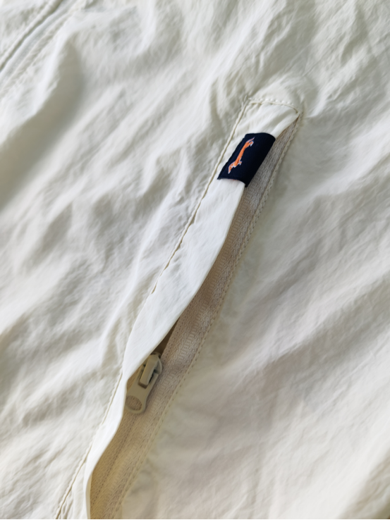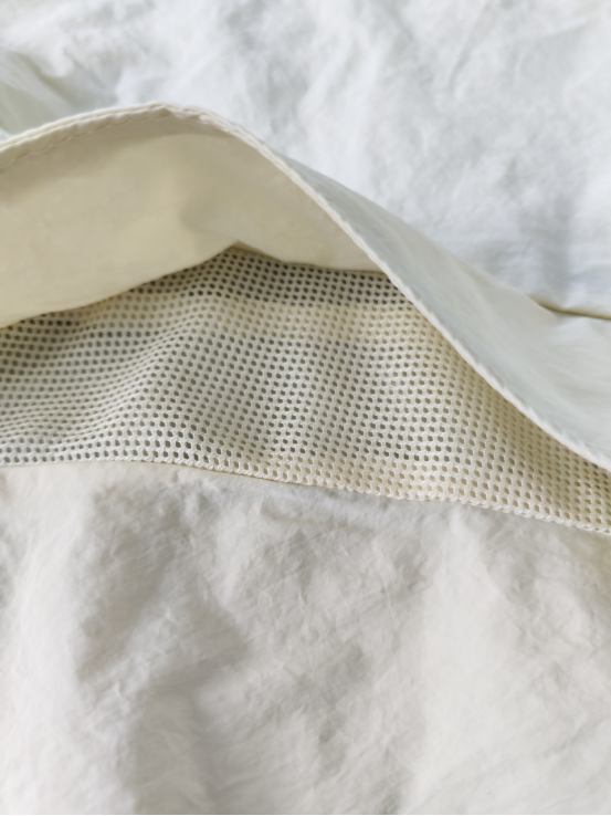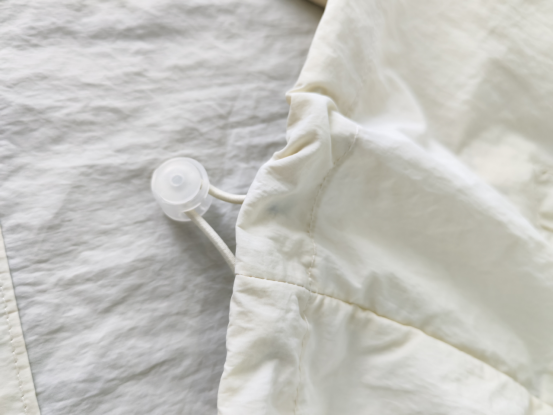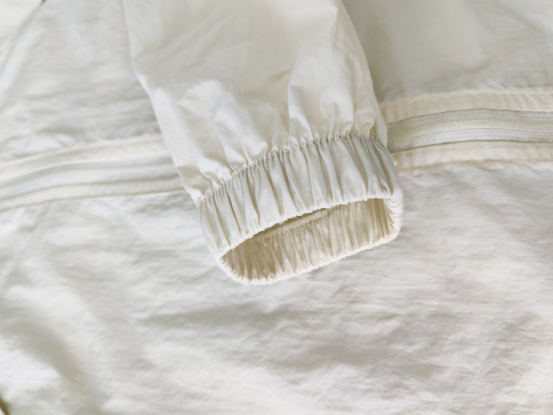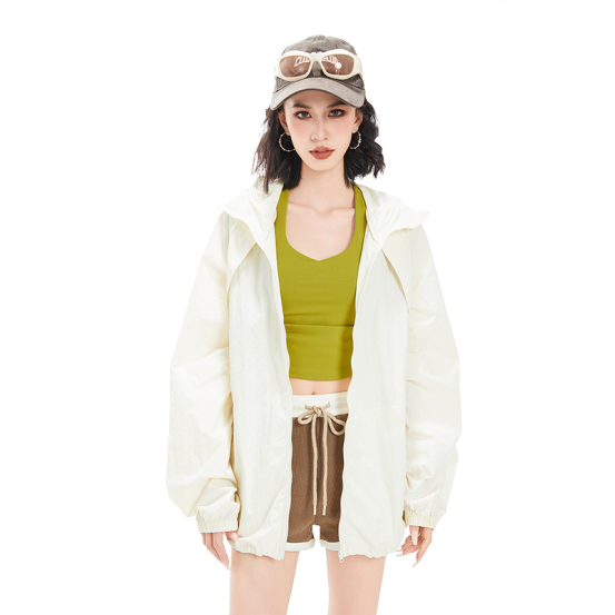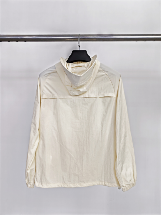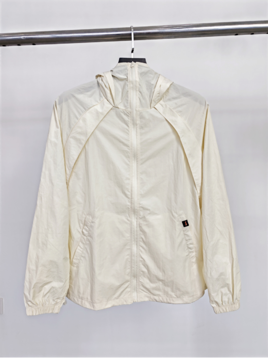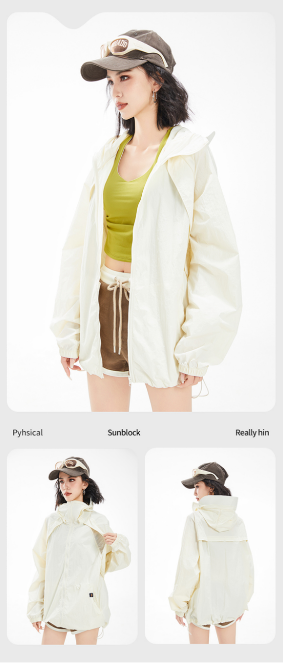 经典米白色,显白百搭, 可以从春天穿到秋天 30几度的天气全靠它了, 防晒指数高,透气孔更多, 出汗一点不闷汗, 特别凉爽而且帽子一体式 不用带防晒口罩