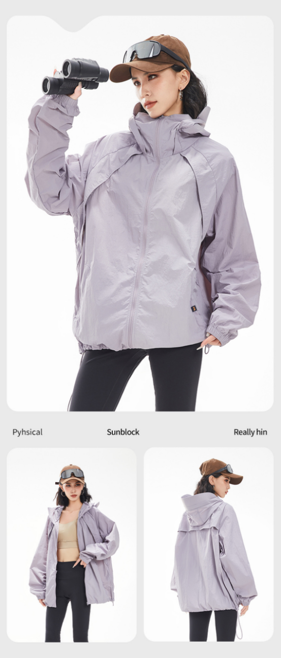 再也不用为穿防晒衣显臃肿发愁啦!这件防晒衣真的绝~ 灰紫太清新了,好适合春夏穿,小假期踏青爬山啥的焊在身上! UPF50+自带凉感,不户外运动,日常出街都能穿!
