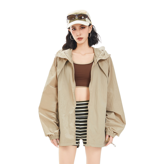 UPF50防晒服 专业防晒指数武装到手指头,防晒伤也防晒黑 卡其色简约高级, 轻盈有质感版型宽松上身却不臃肿, 随意一搭就能出门啦