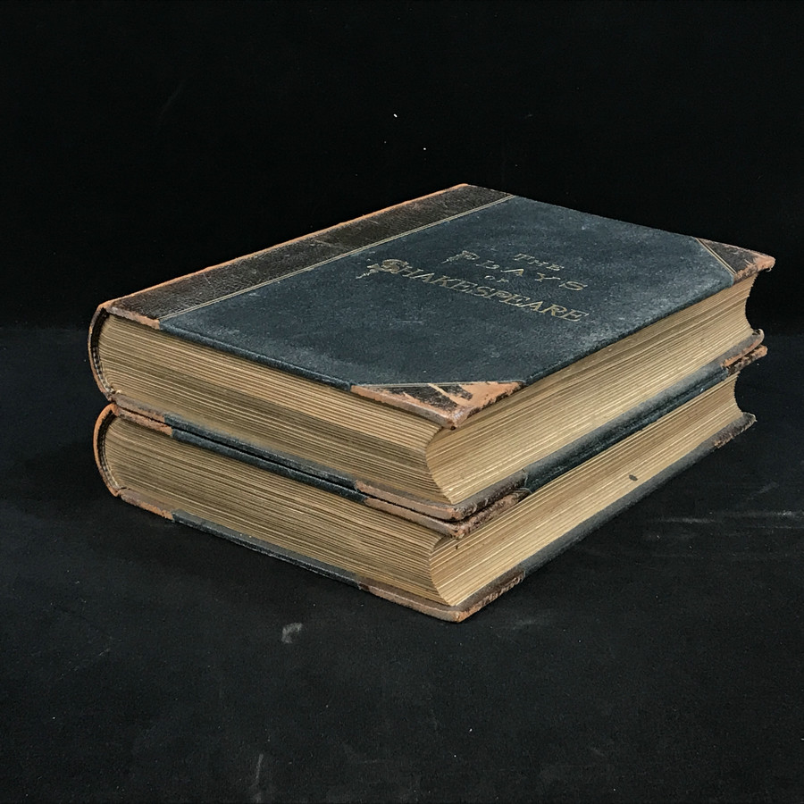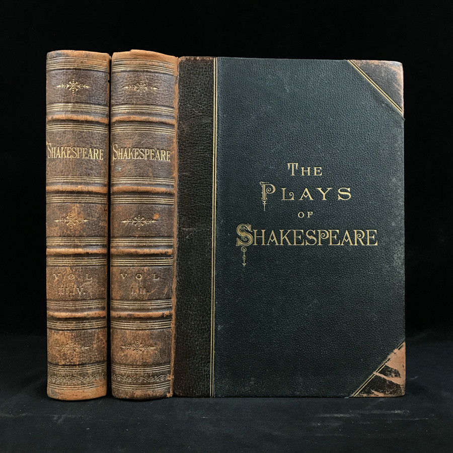 约19世纪晚期 莎士比亚戏剧集(全4卷,合2册) 约30幅插图 真皮精装16开