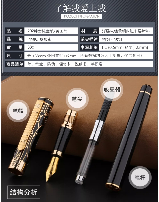 毕加索PS-902黑镀金雕铱金笔