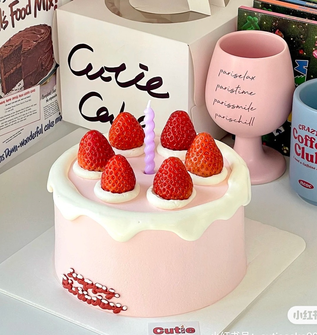 【优品系列】---ins风【淋面草莓】水果女士生日蛋。糕蜡烛颜色随机