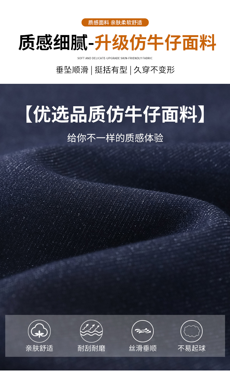 仿牛仔面料:告别传统牛仔的厚重束缚,柔软舒适,带给你前所未有的舒适体验。
