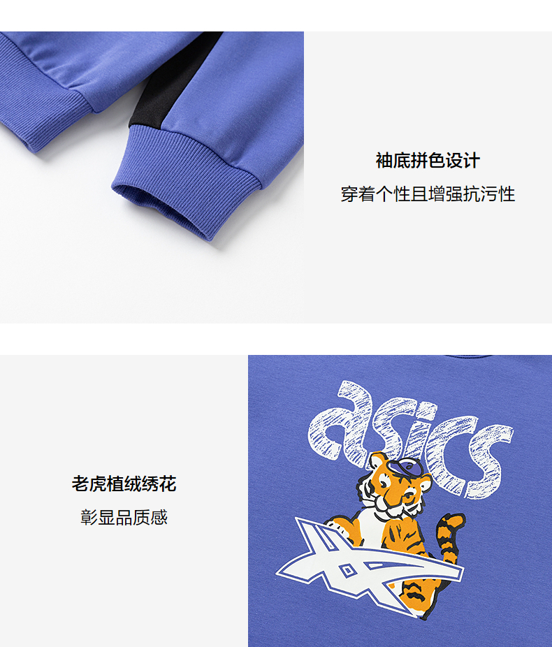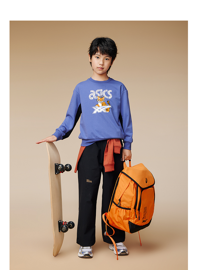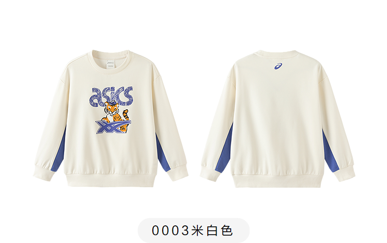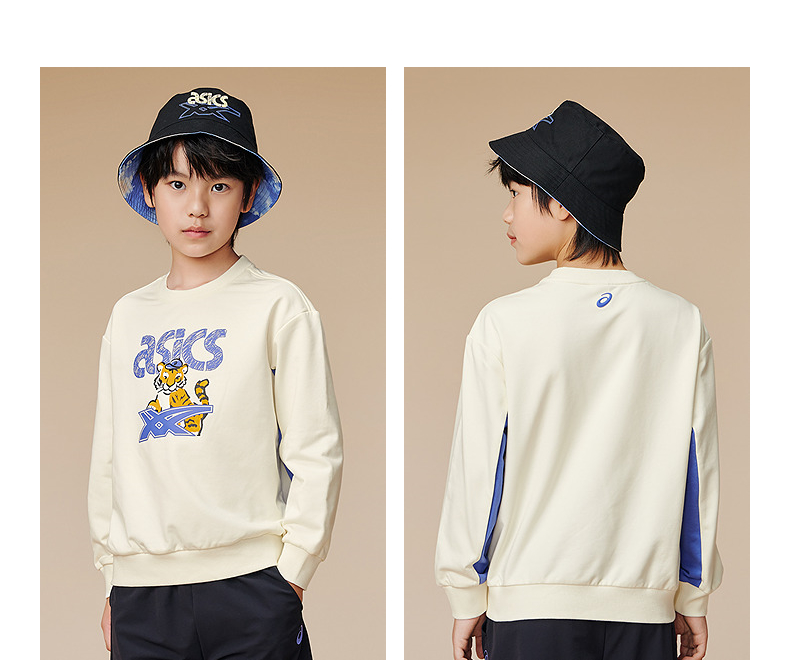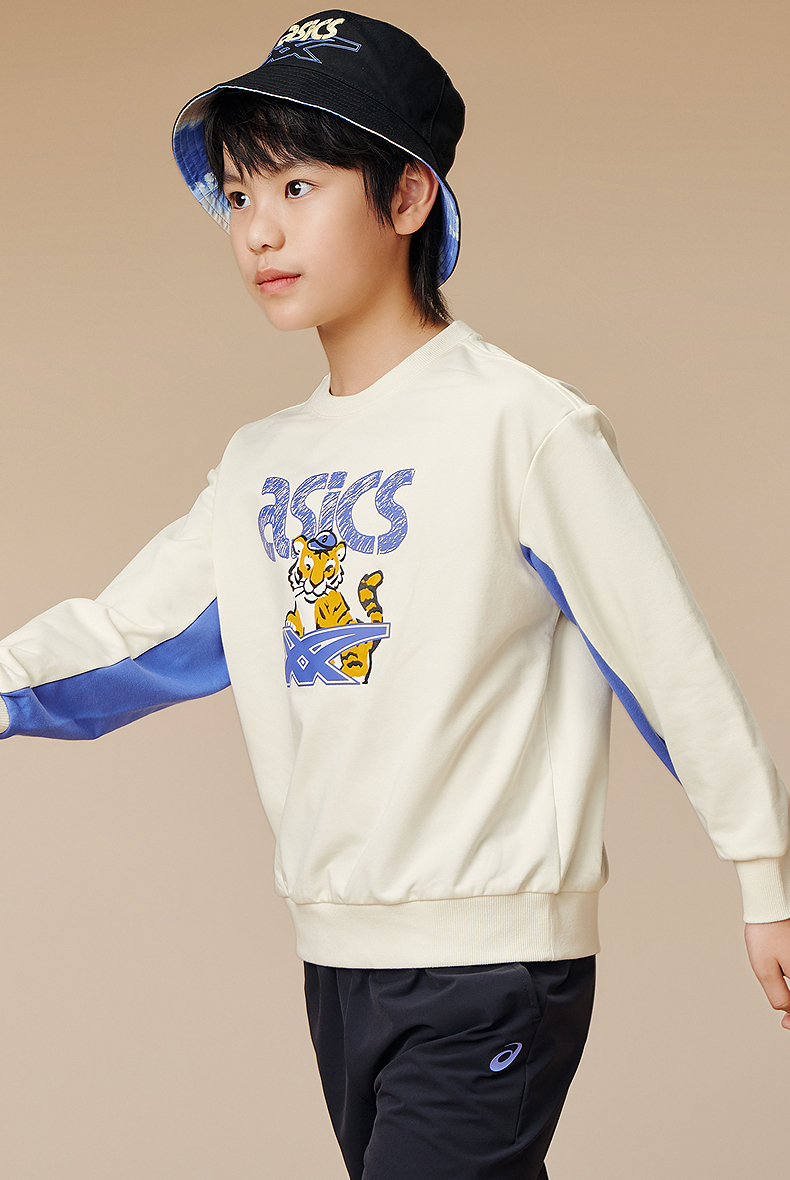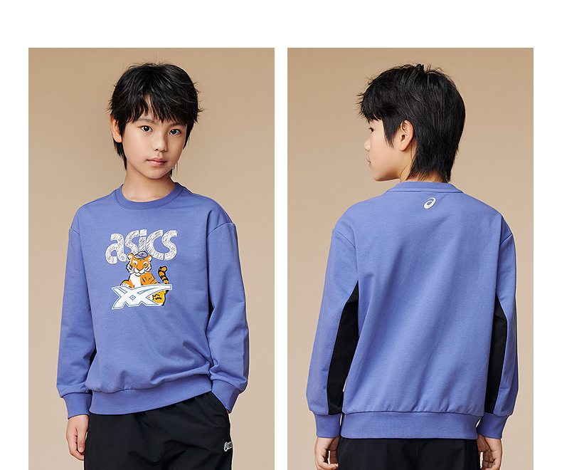 ASICS/亚瑟士儿童2025年新款男童落肩圆领卫衣时尚宽松拼色长袖