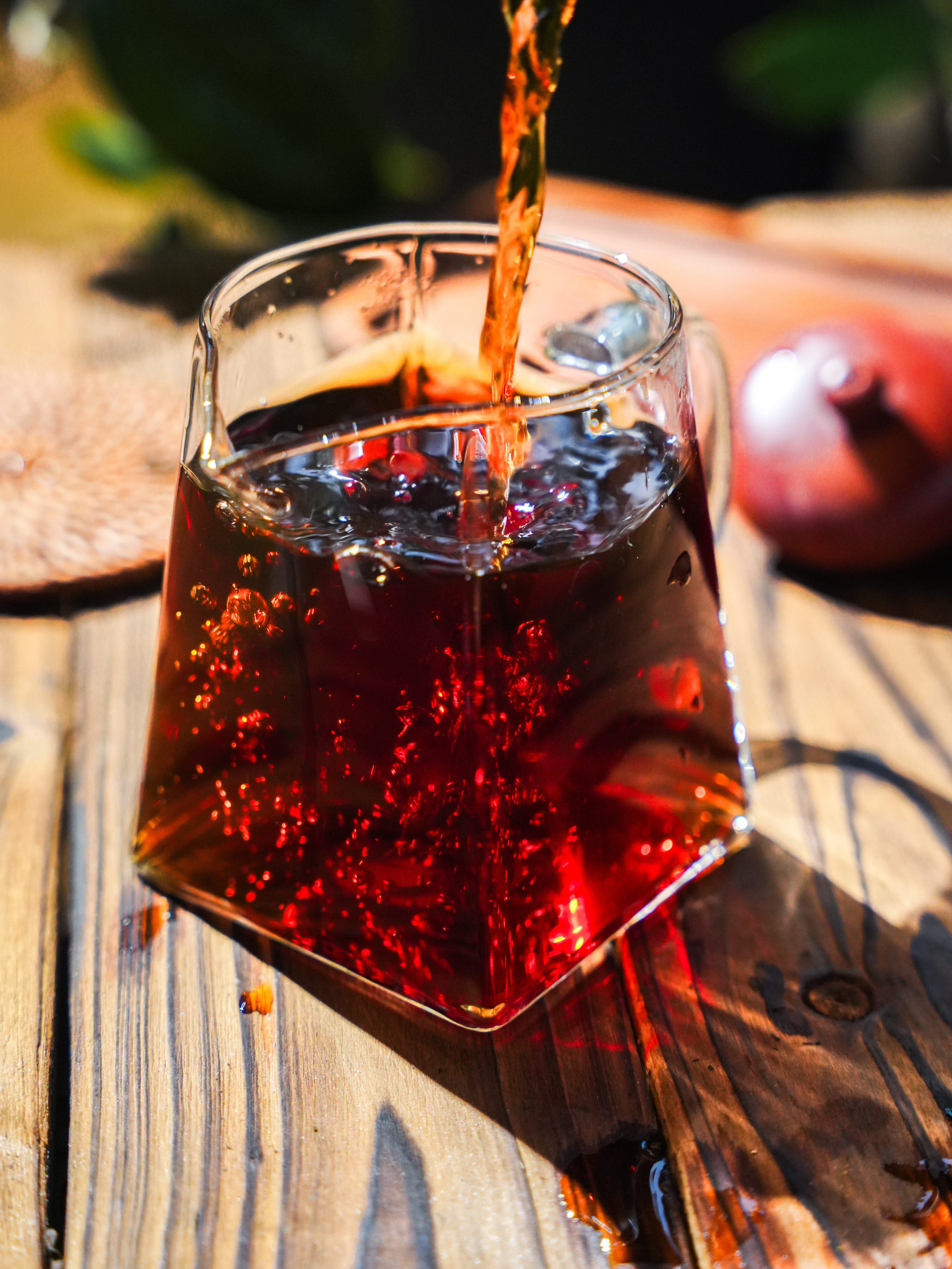 这款熟茶的汤色呈现酒红色泽,莹润透亮,茶汤绵滑醇厚,甜润生香,散发着温润的糯香,色香味三美俱全,尽显宫廷熟茶的优秀品质。茶香在沸水的浸润下徐徐舒展,初闻糯香扑鼻,随后陈香与木质香层次绽放,尾调泛起清甜的蜜糖气息,香气层次丰富。茶汤稠厚绵密,伴随明显生津,如冰糖般清甜,饮后喉韵甘润持久,将香、甜、厚、润完美融合,带来温暖舒畅的品饮体验。叶底状态是熟茶品质的直观反映,本品的叶底红褐柔软,匀整鲜活,触手柔软,发酵适度无杂味,透淡雅熟香,彰显原料的上乘与精湛工艺。