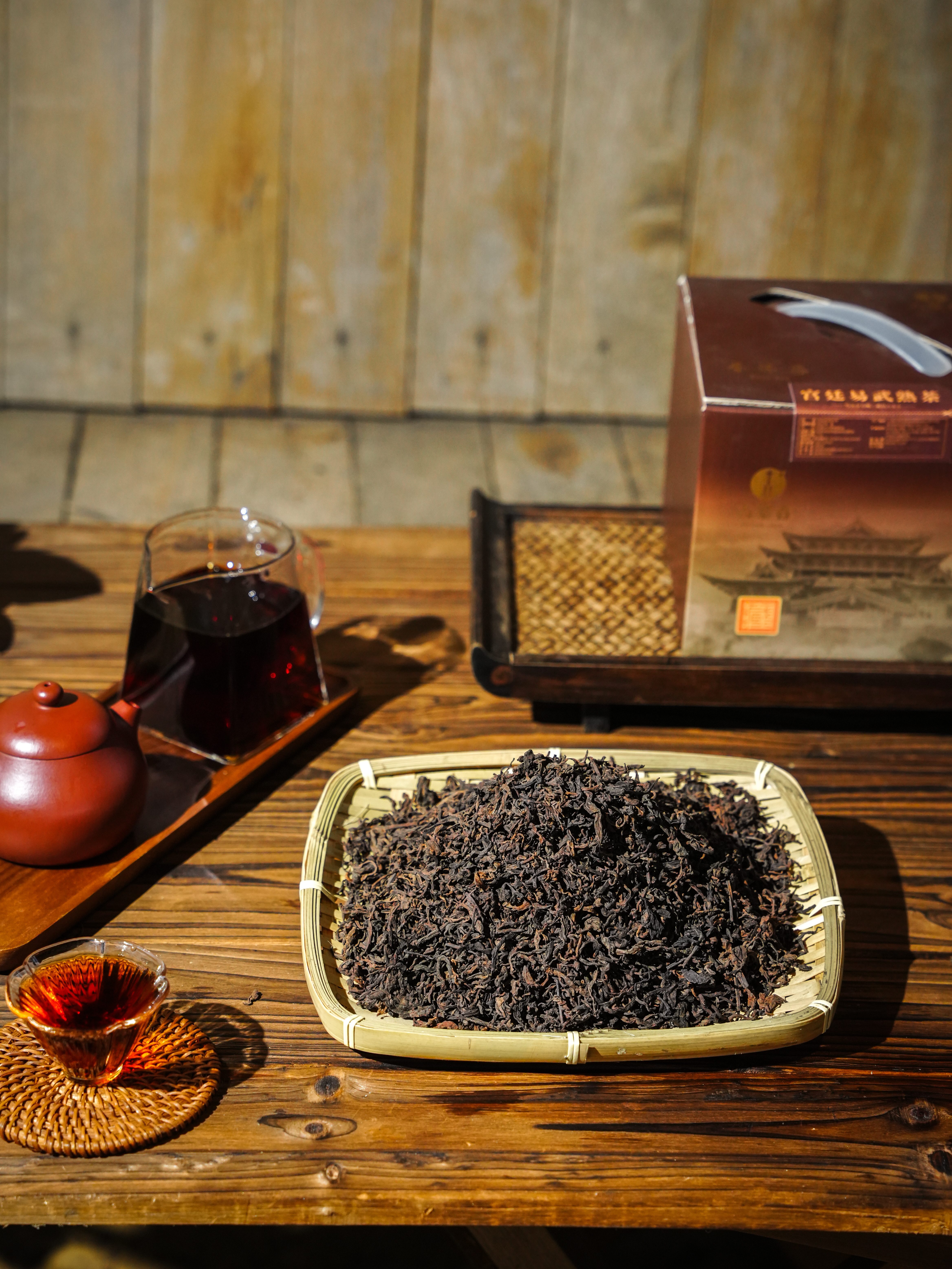 本品易武宫廷散熟是由30年发酵经验的老师傅亲自操刀,于茶叶而言,咖啡碱、茶多酚、氨基酸三者含量比例决定了茶叶的滋味呈现,三者如果比例适量,回甘就会比较明显,普洱熟茶也是一样。发酵适度的普洱熟茶,表现为干茶条索紧结色泽红褐有光泽。