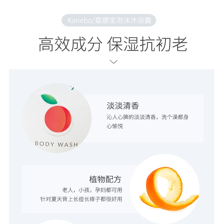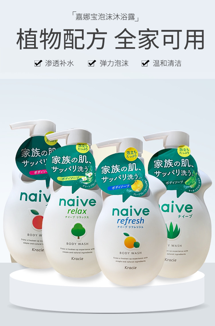 日嘉娜宝桃叶沐浴露530ml 洗完身心愉快 植物配方 全家适用