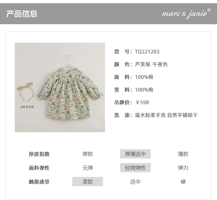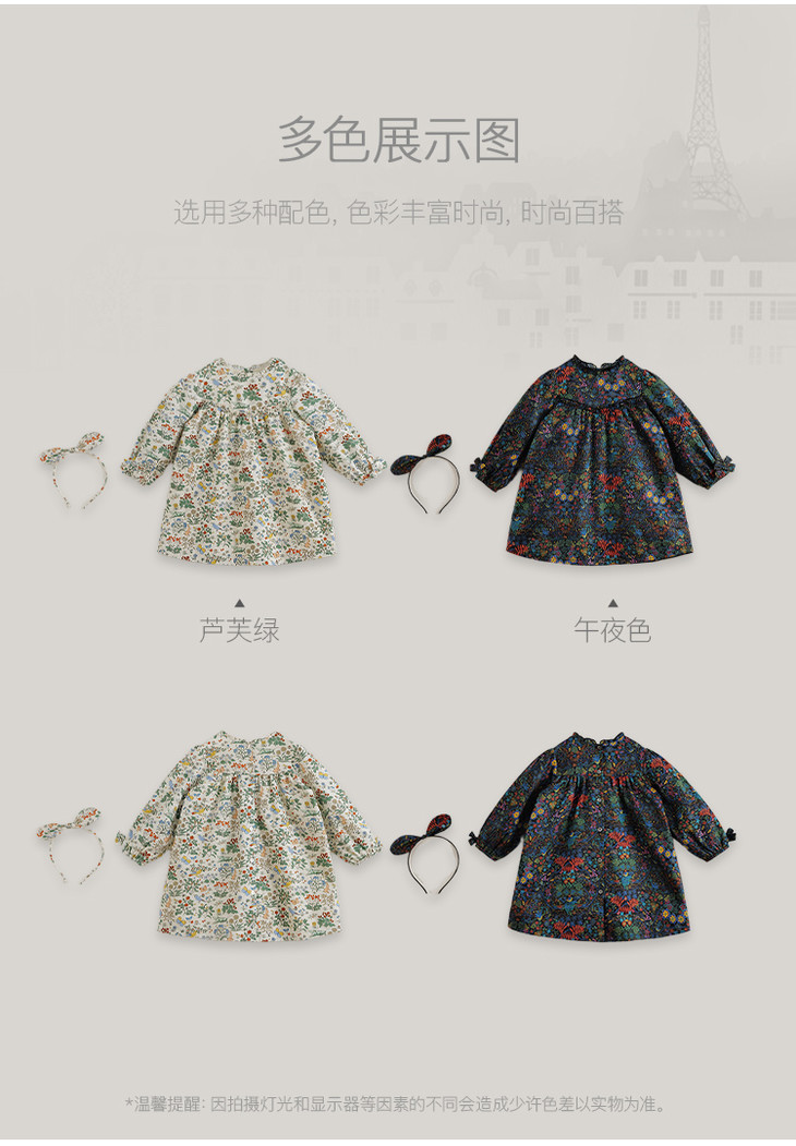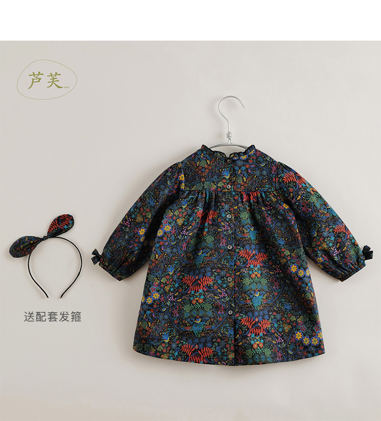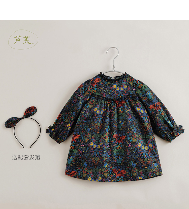 【马克珍妮 芦芙】春装 女童复古木耳边连衣裙221283