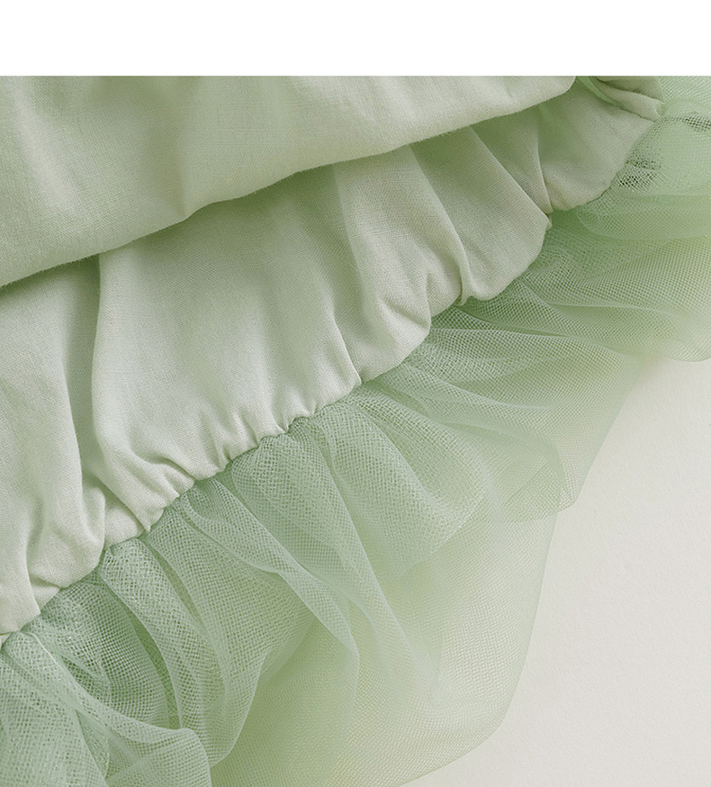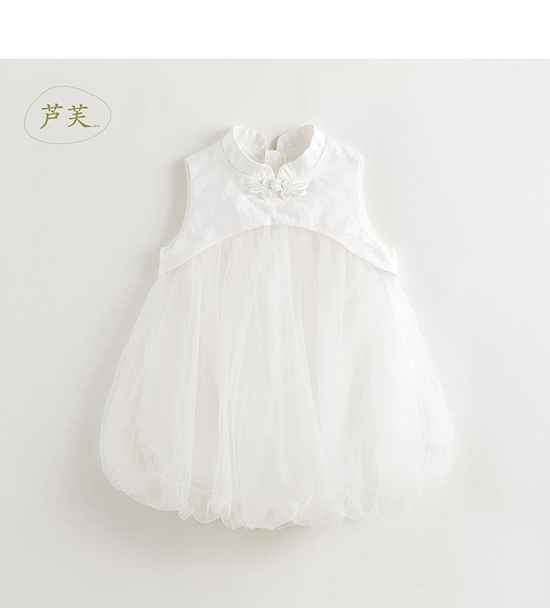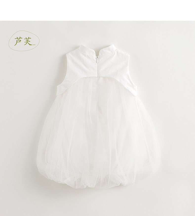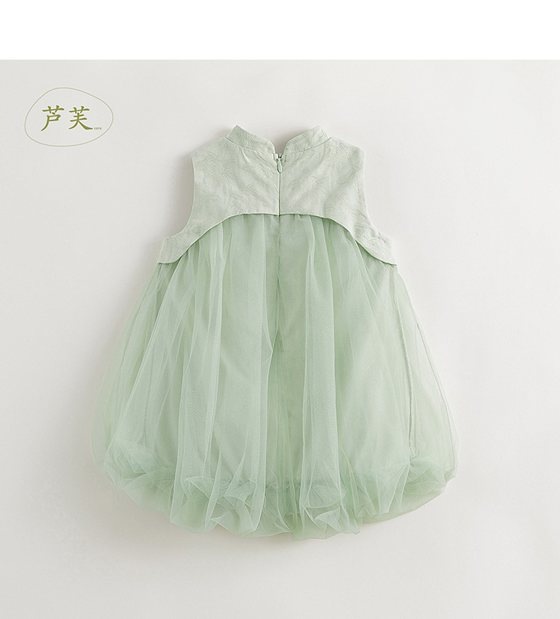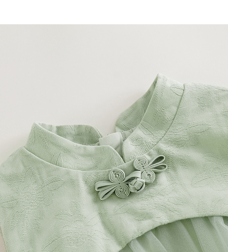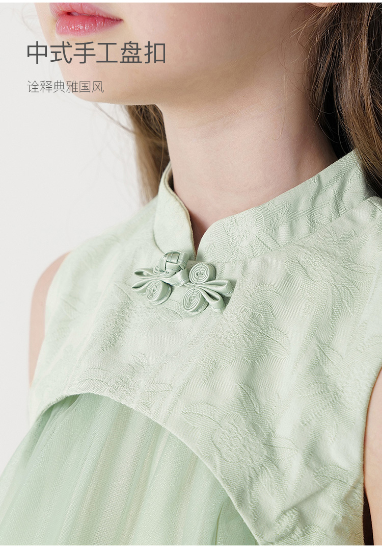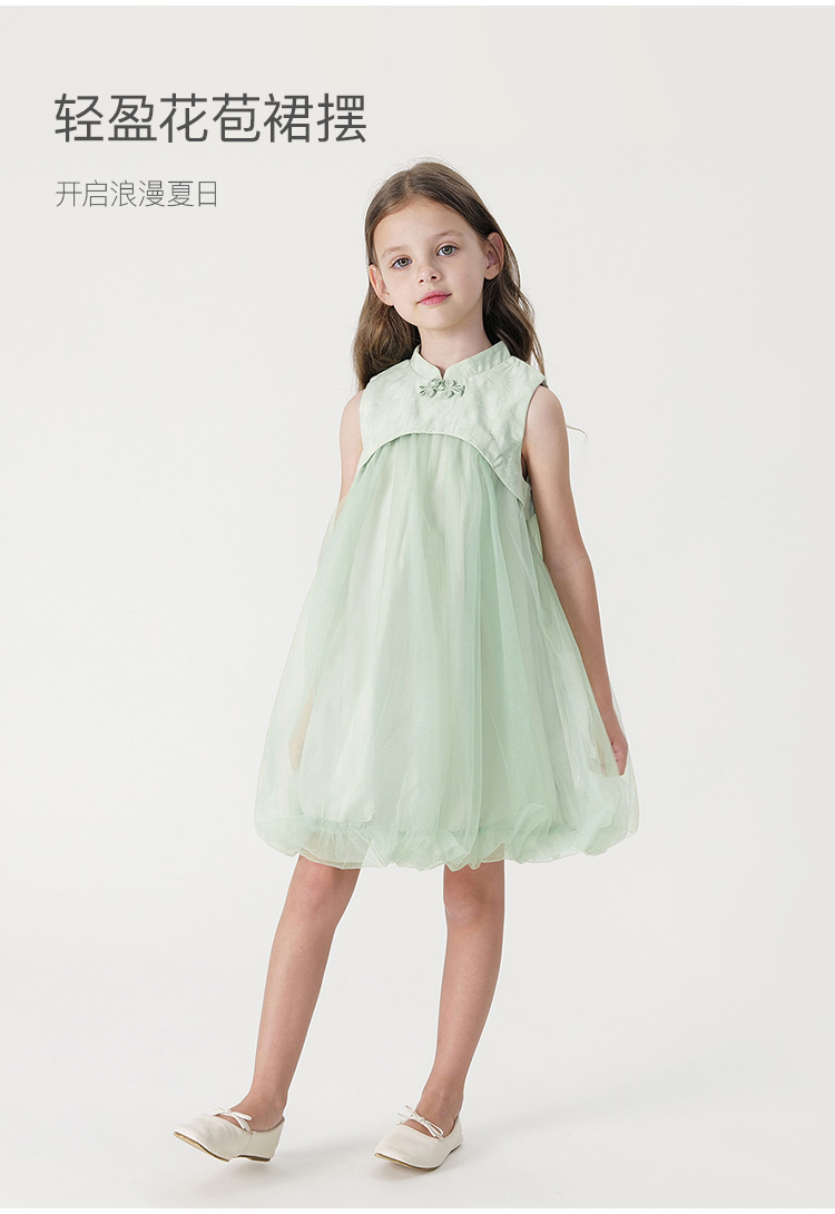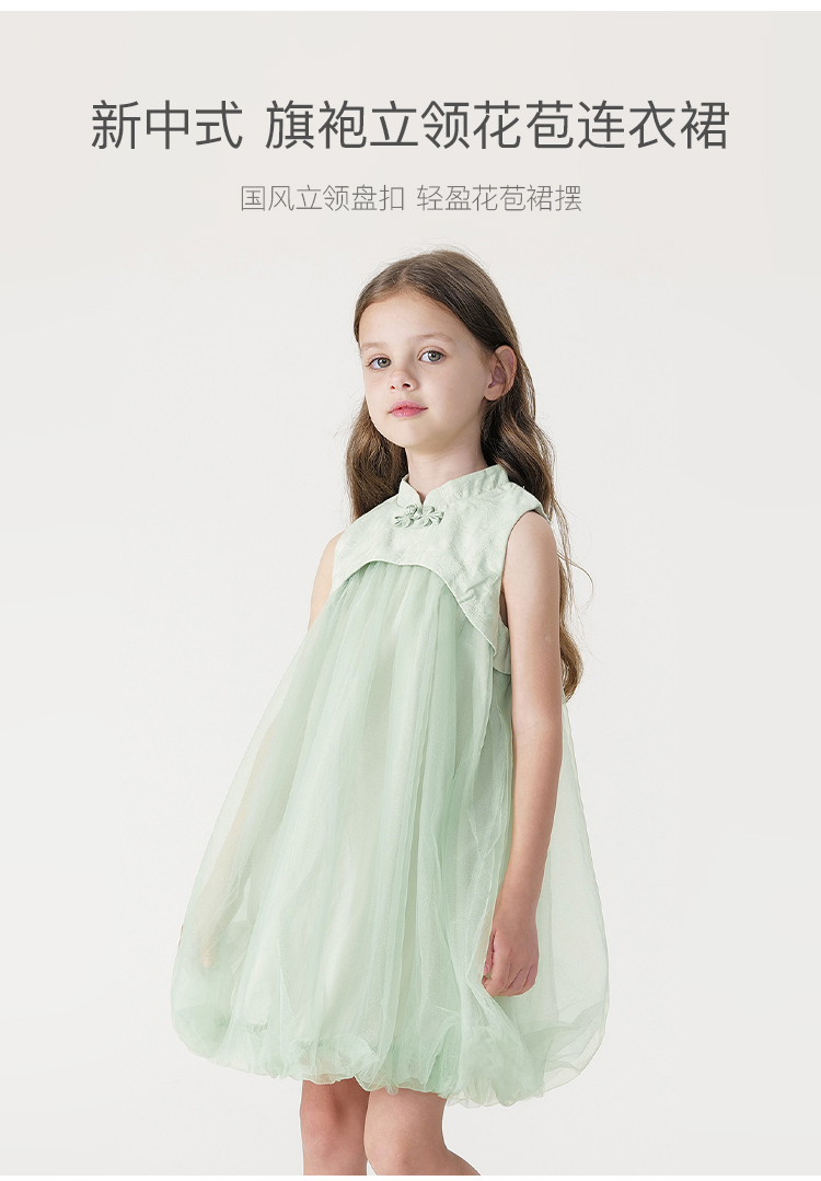 【马克珍妮 芦芙】女童新中式旗袍领网纱花苞连衣裙夏装新款240859