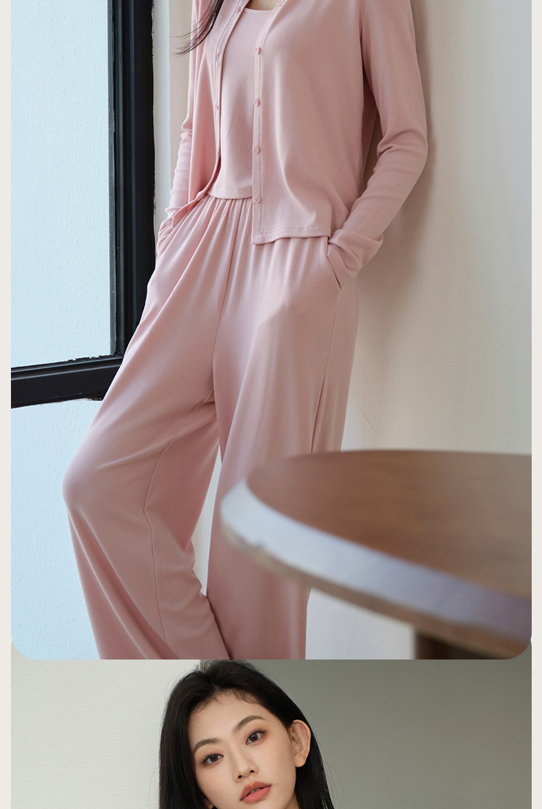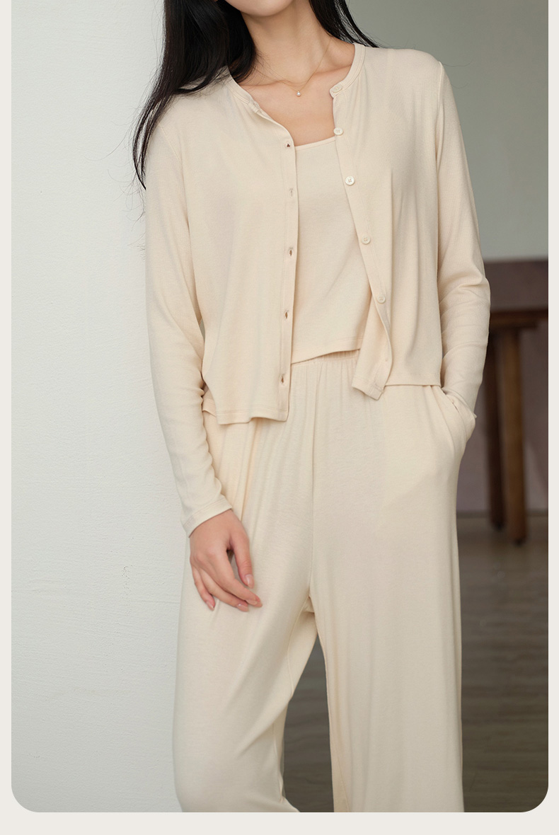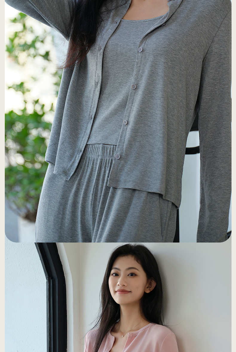 罗纹棉外套吊带长裤三件套