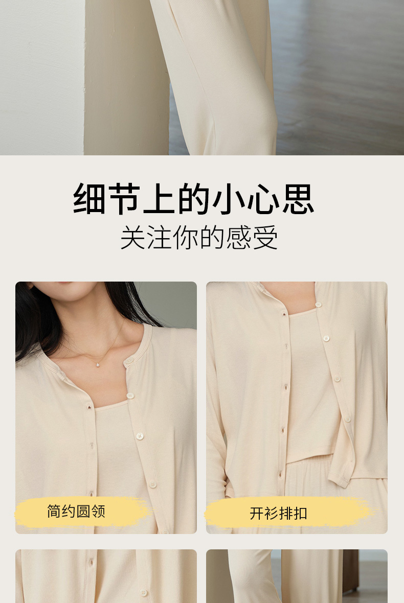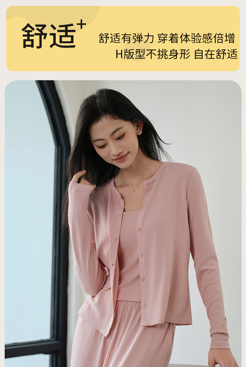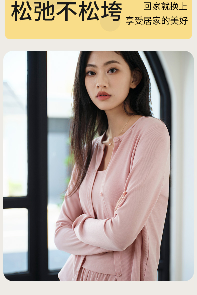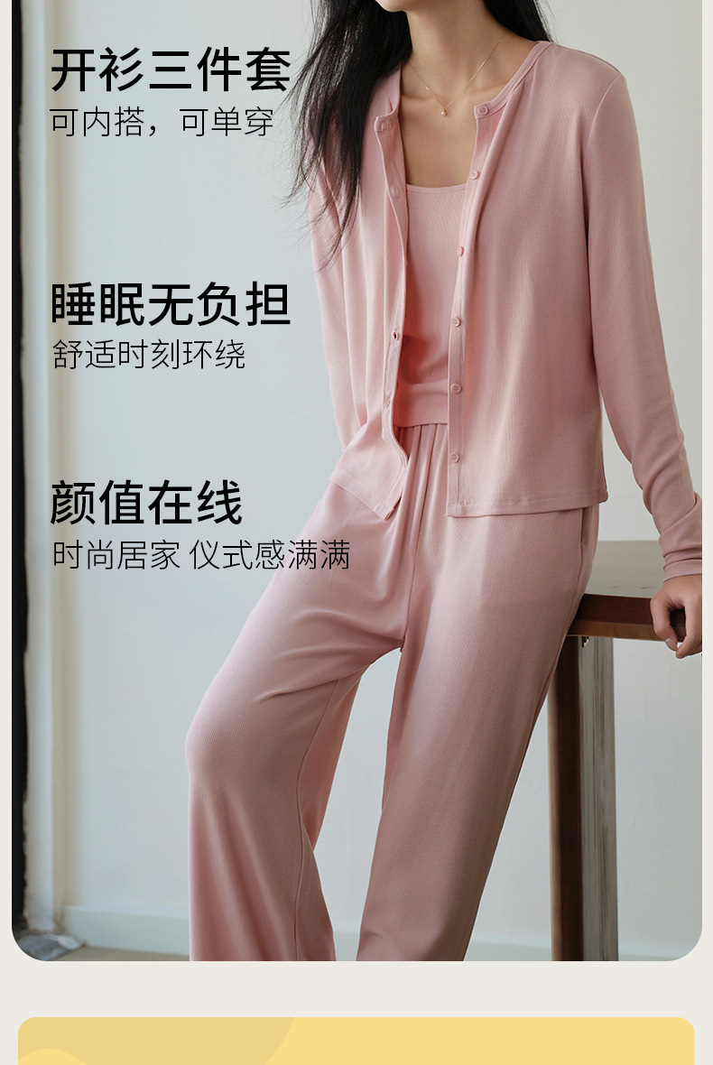 罗纹棉外套吊带长裤三件套