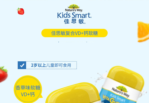 【保税】澳洲 佳思敏 Nature's Way Kids Smart钙+维生素D软糖60粒