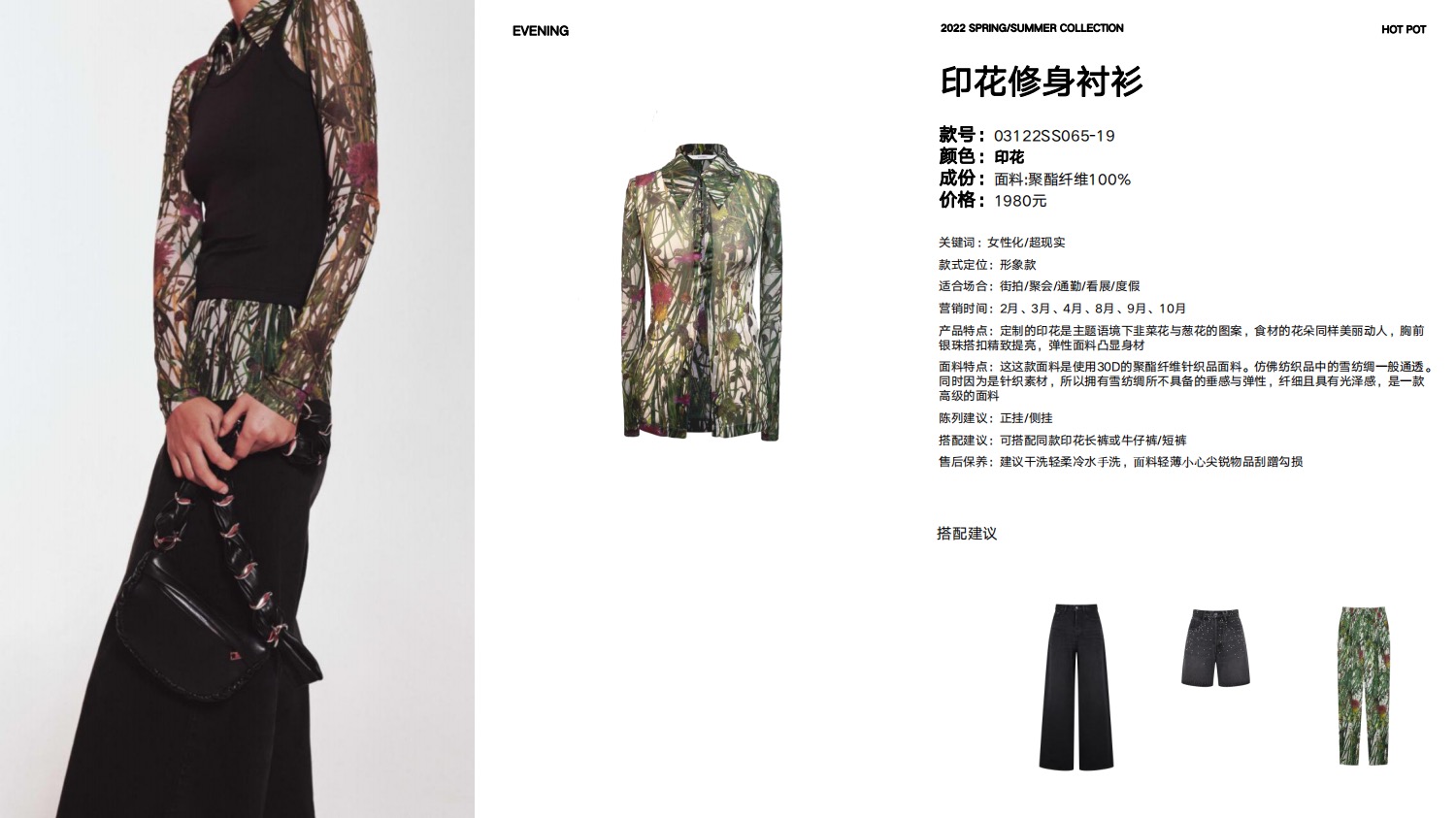 EVENING印花修身衬衫