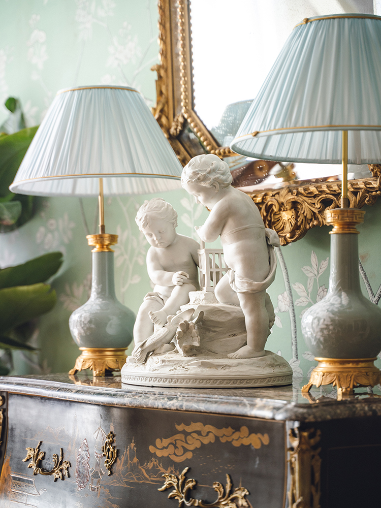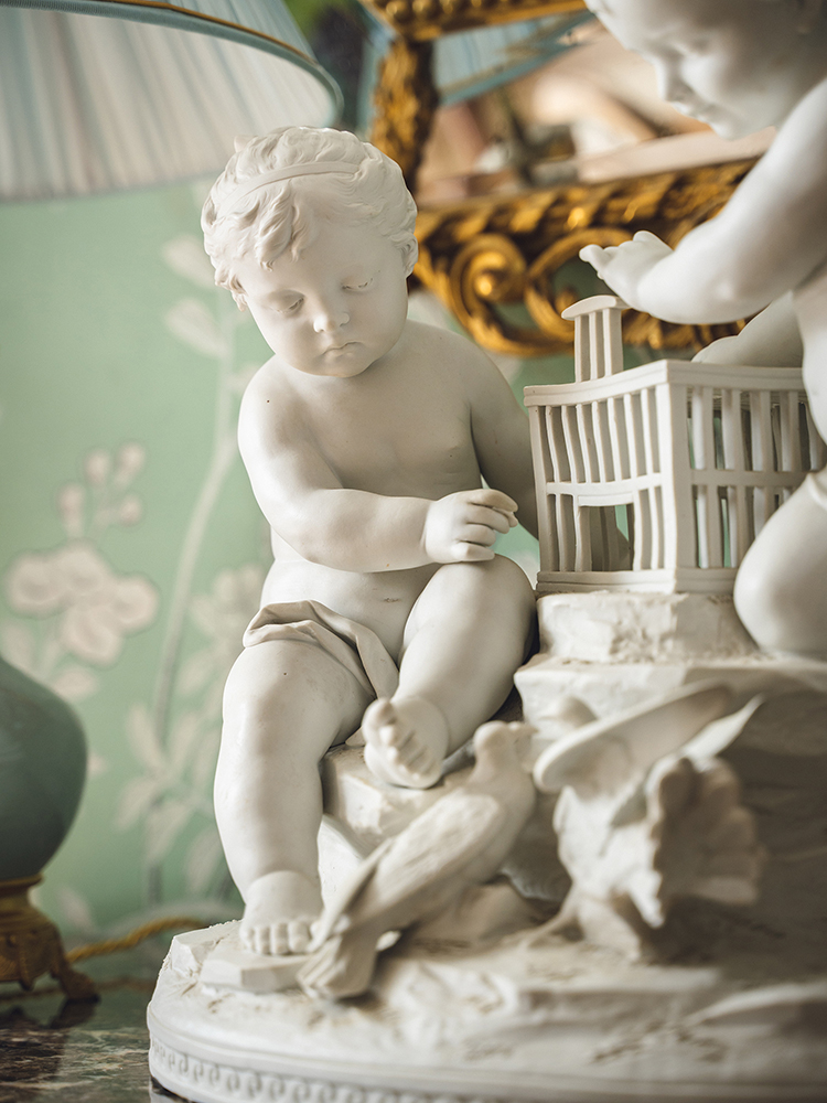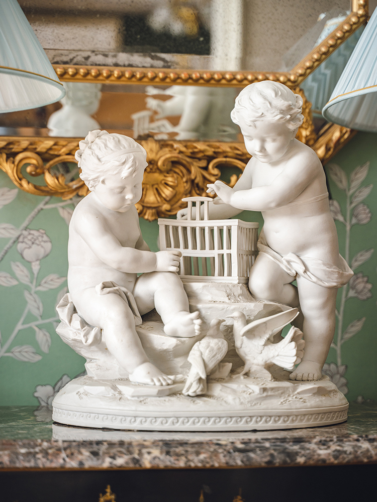 19世纪法国出品孩童与白鸽主题素胎瓷人物雕塑