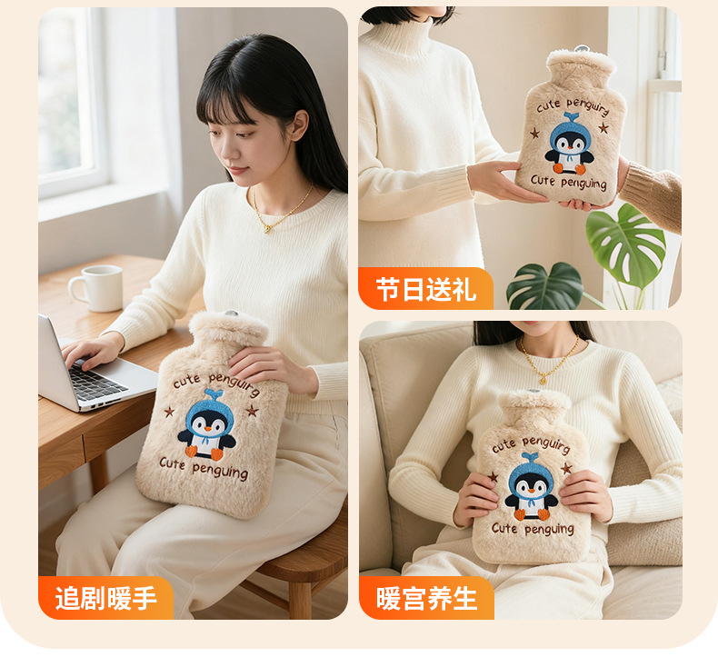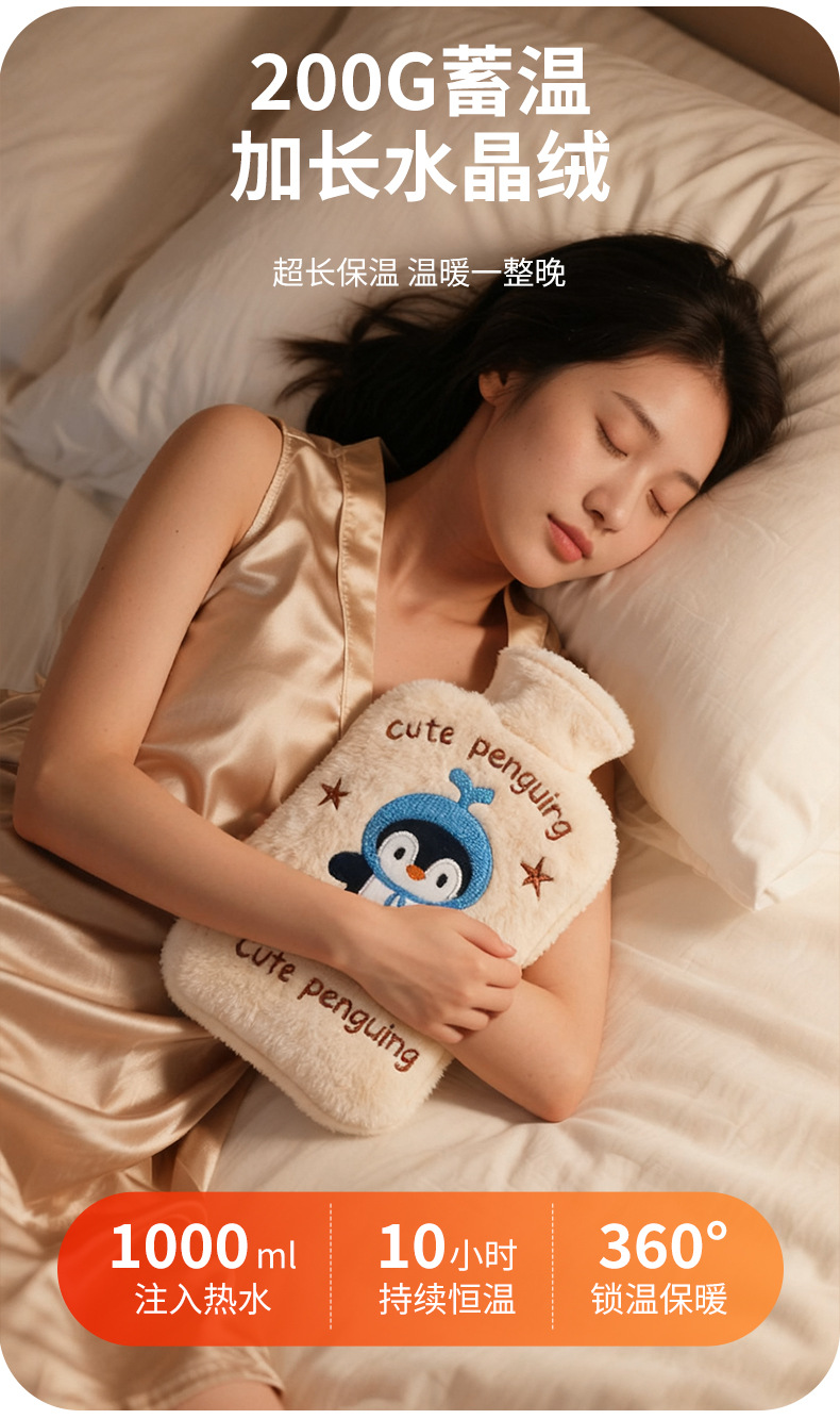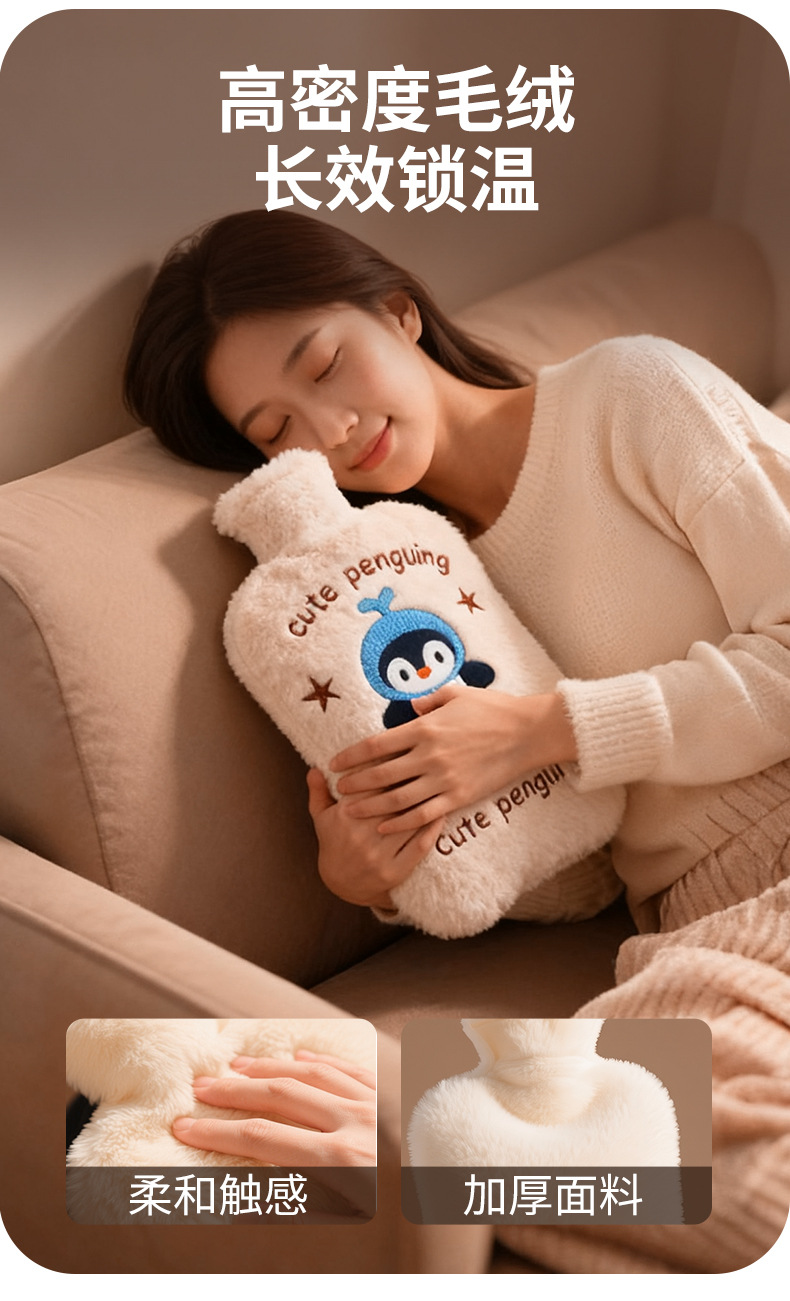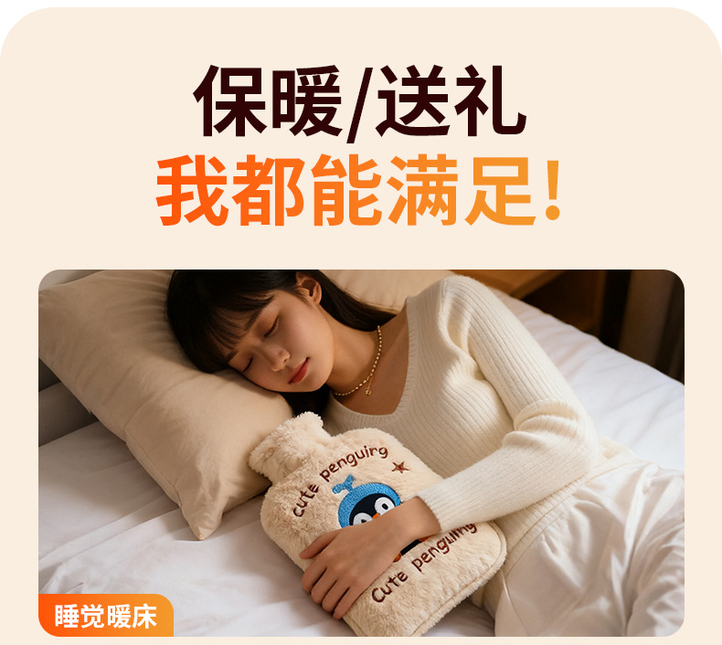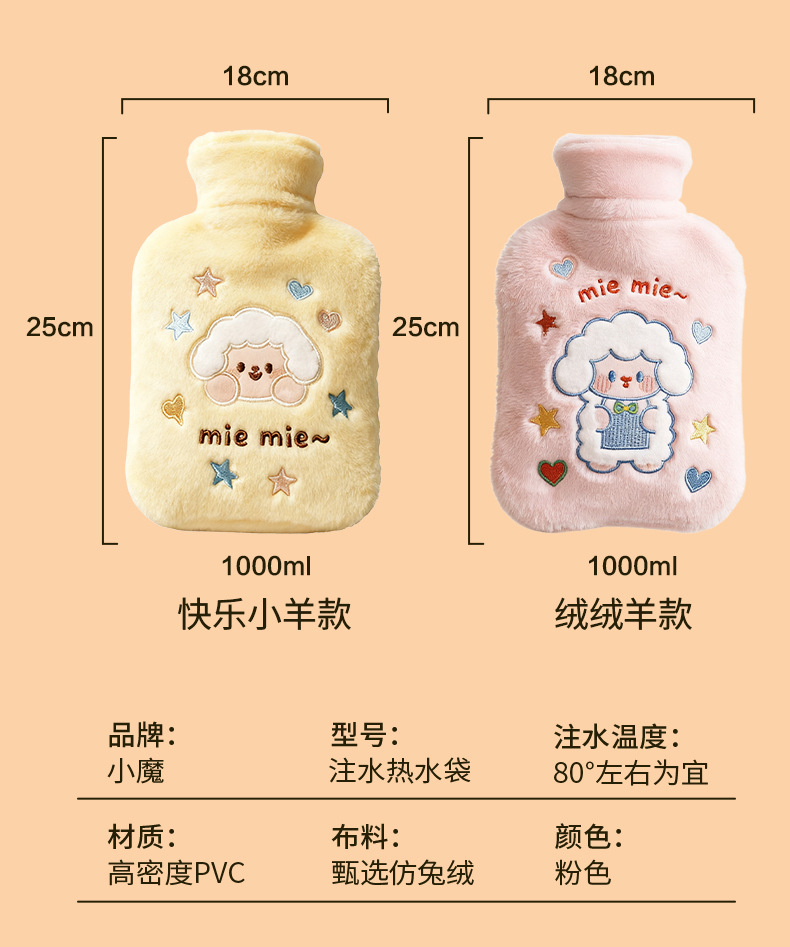 「3C认证!抖音同款」注水热水袋卡通可拆洗柔软保暖保温PVC灌水袋居家日用暖床暖水袋暖手宝宝