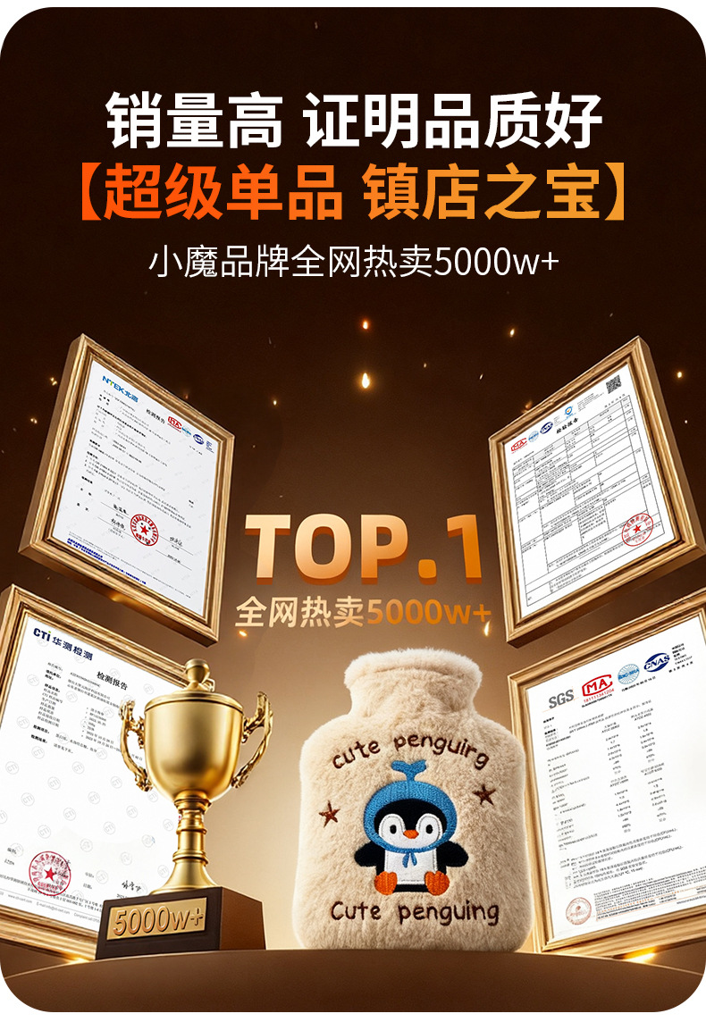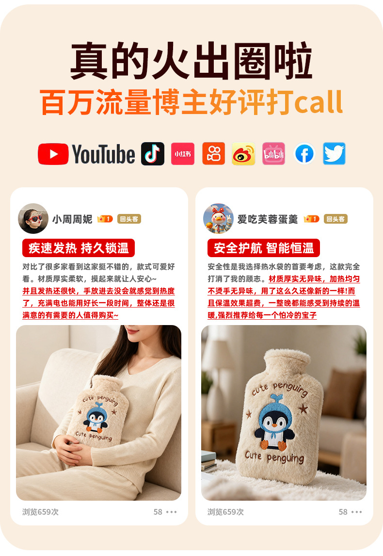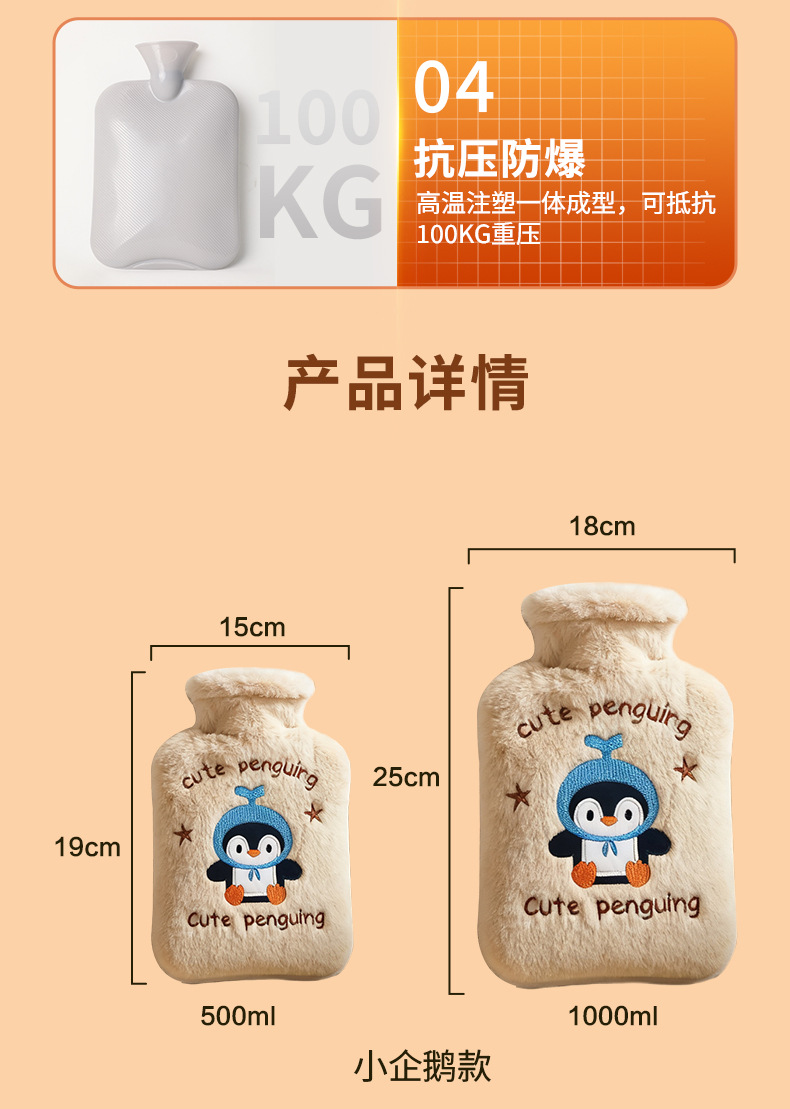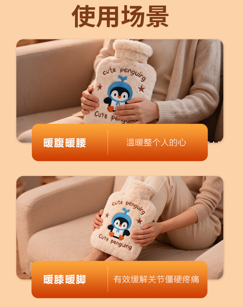「3C认证!抖音同款」注水热水袋卡通可拆洗柔软保暖保温PVC灌水袋居家日用暖床暖水袋暖手宝宝