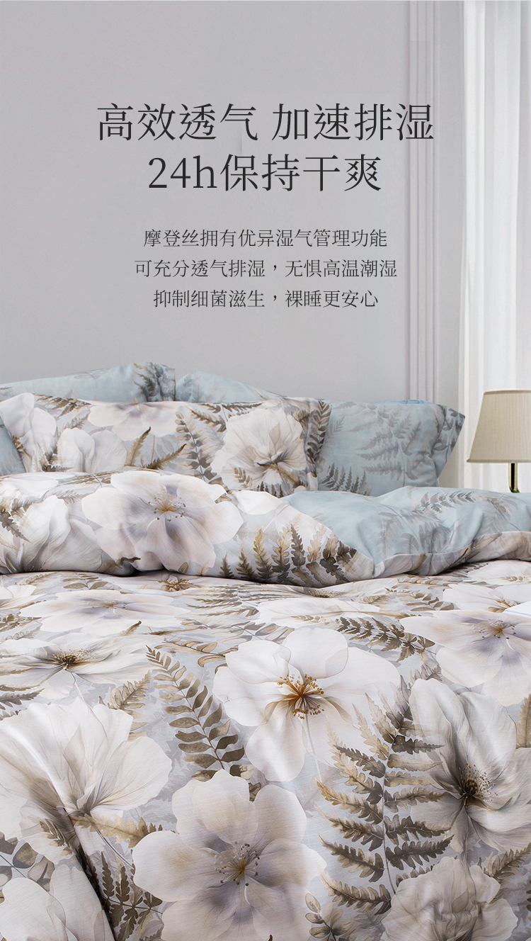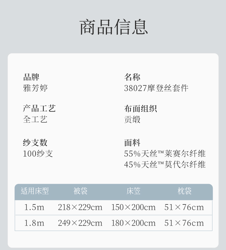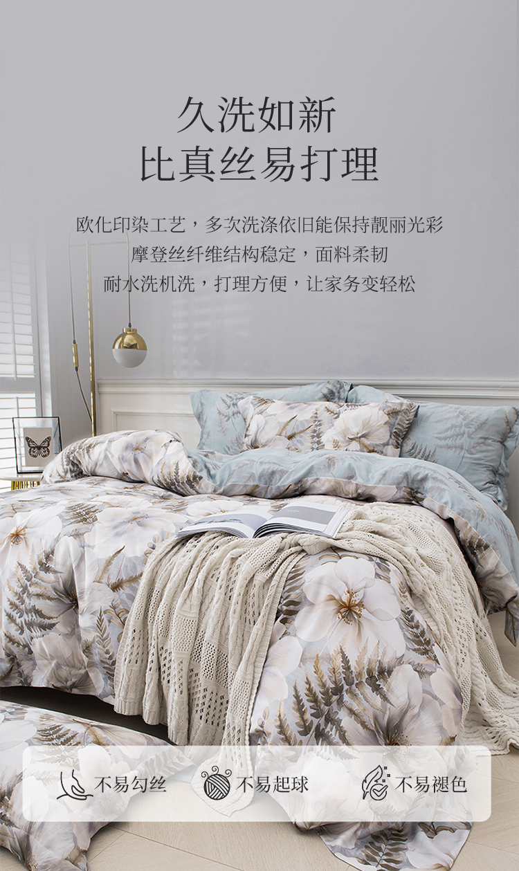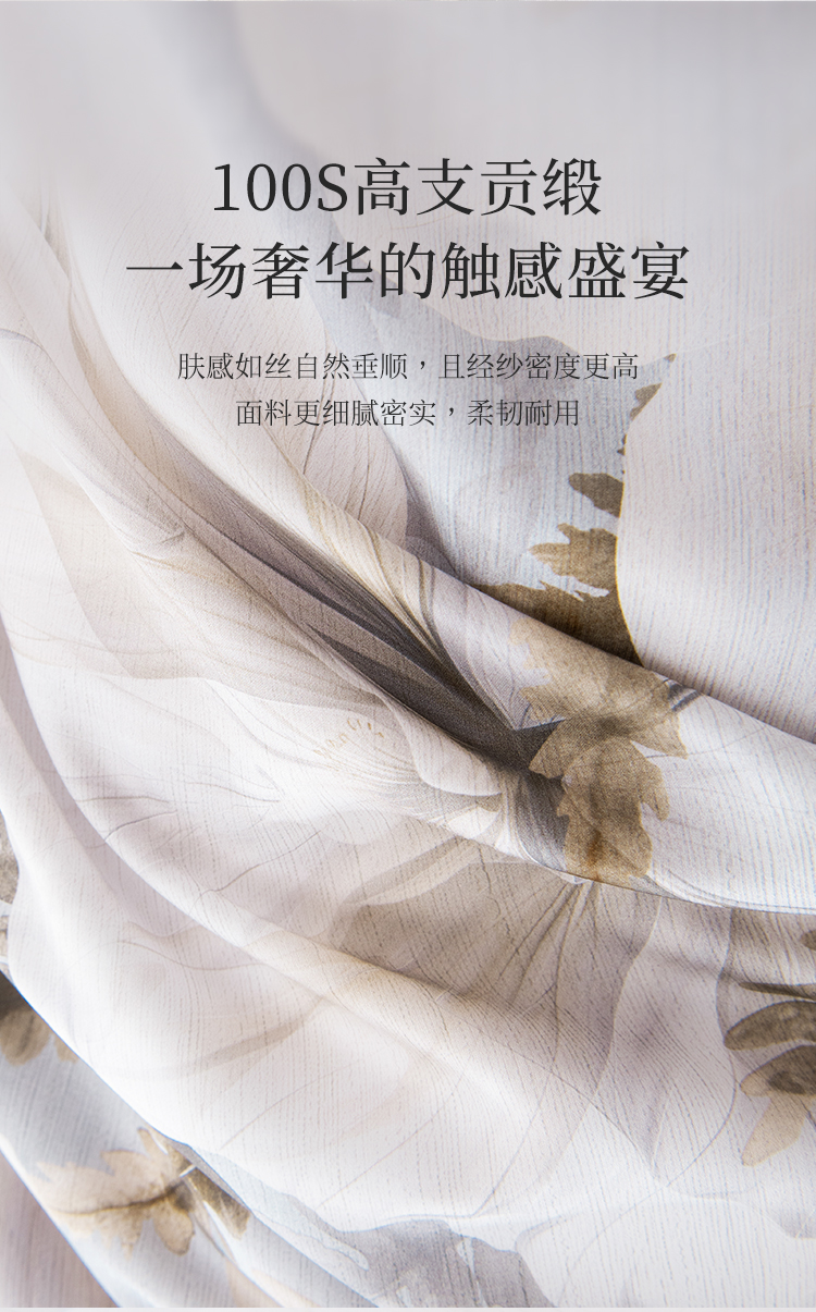 2025年春季新款雅芳婷100S摩登丝床笠六件套轻奢丝滑被套亲肤套件