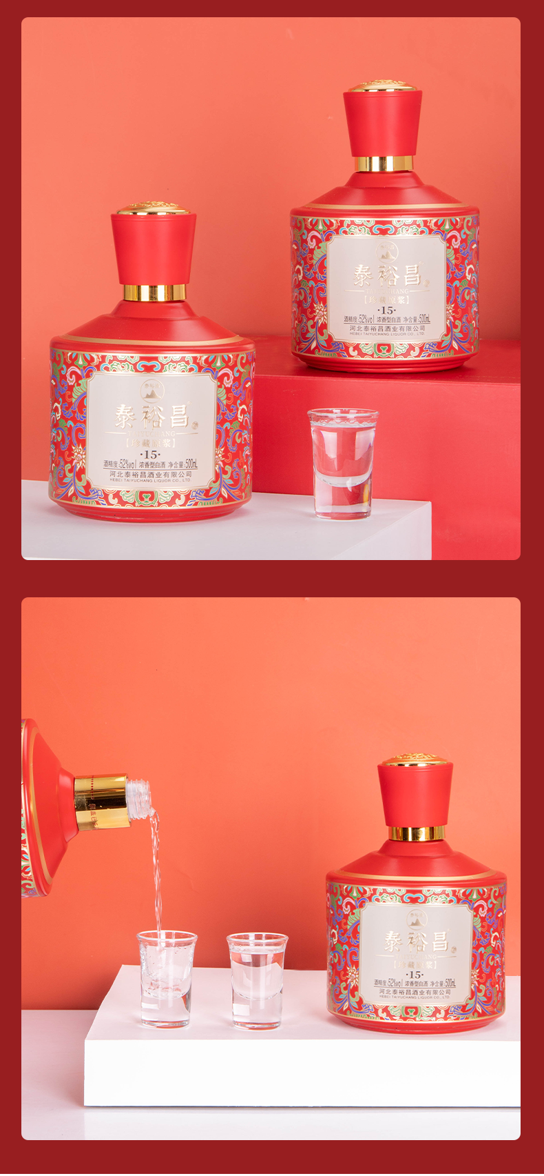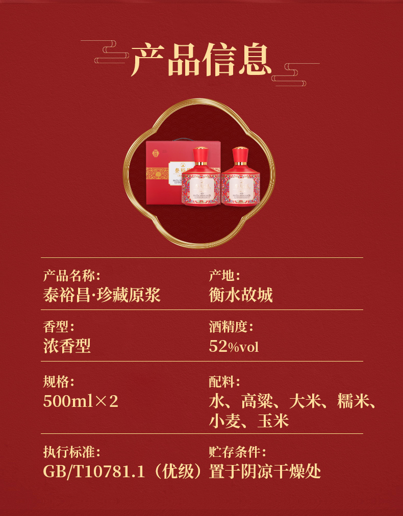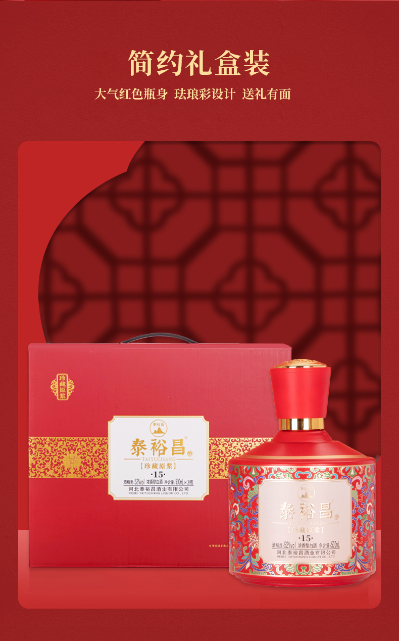 [珍藏原浆]52度2瓶-泰裕昌浓香型白酒整箱500ml*2瓶装礼盒装浓香型白酒
