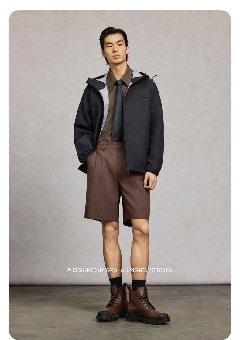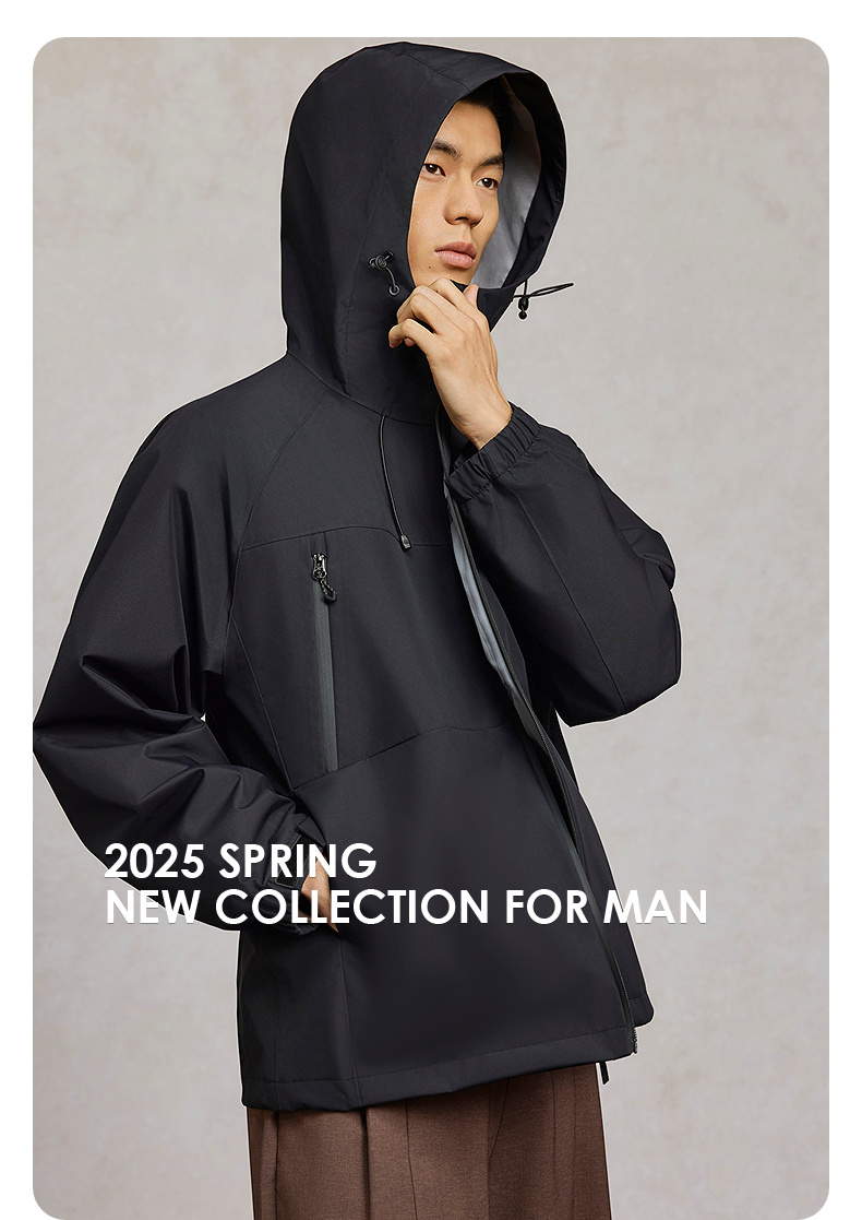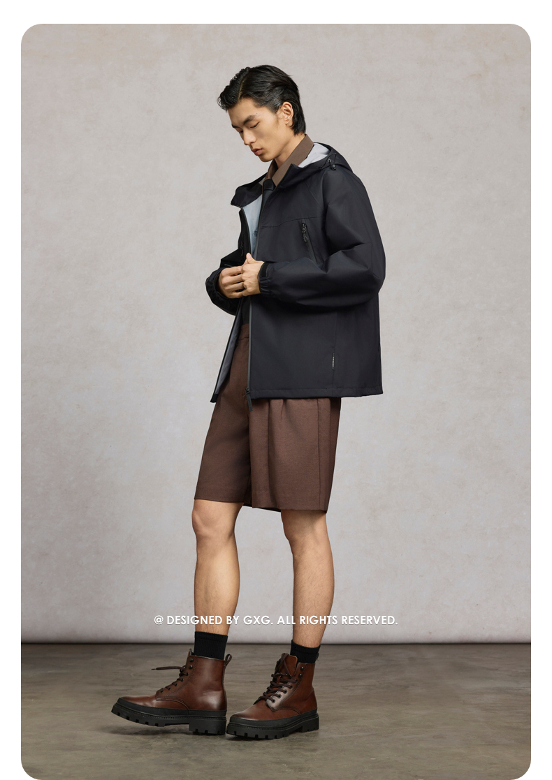 GXG男装 黑色连帽户外简约通勤运动夹克25年春热卖G25X211019