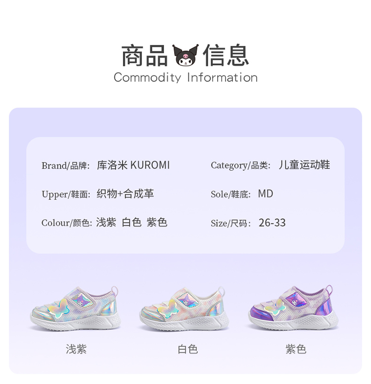 KUROMI库洛米童鞋女童运动鞋夏季休闲鞋小童鞋子儿童网鞋26-33 KU5526803