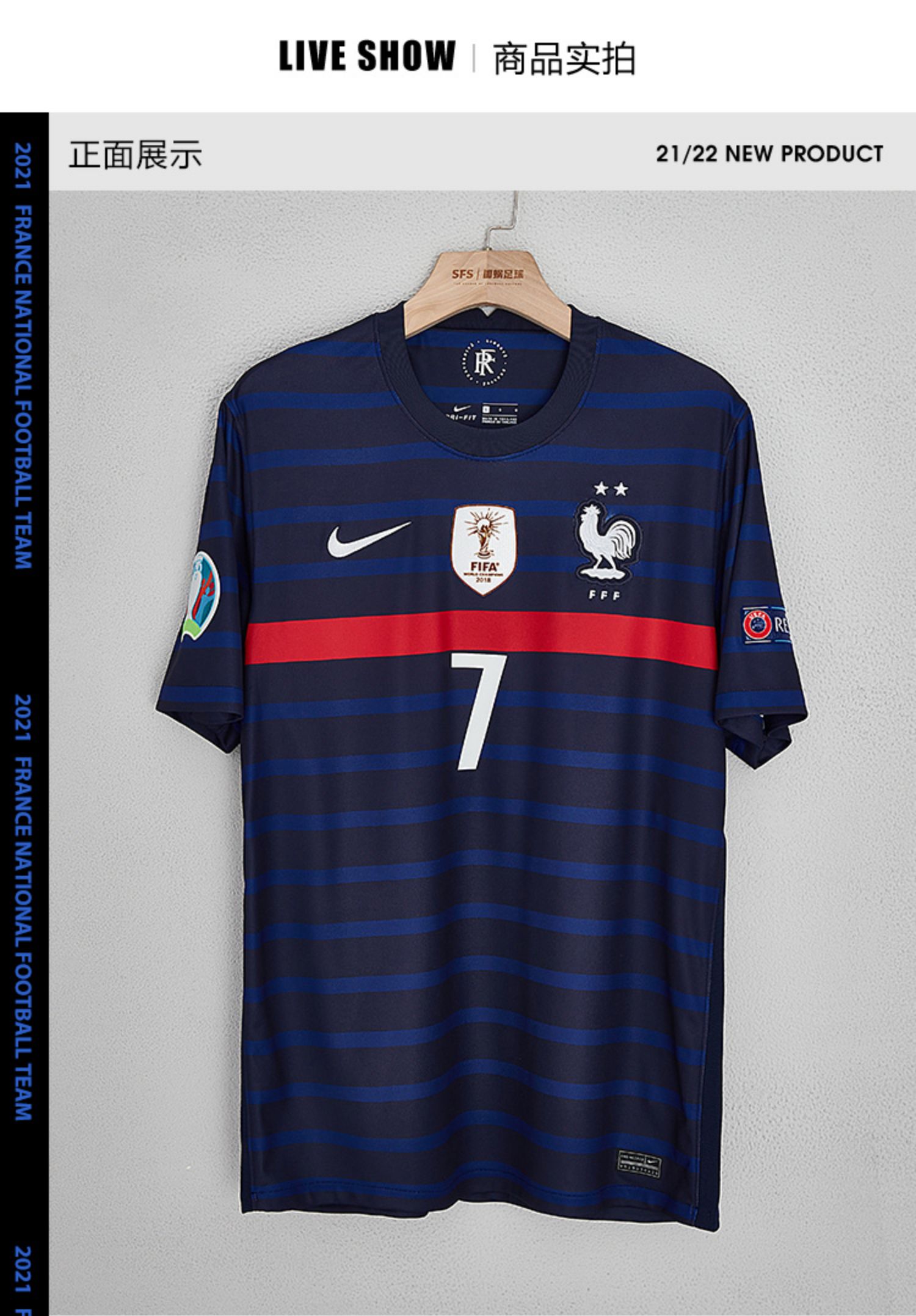 【送球员印号】SFS耐克正版 2021欧洲杯法国队主场球衣球迷短袖足球服CD0700-498