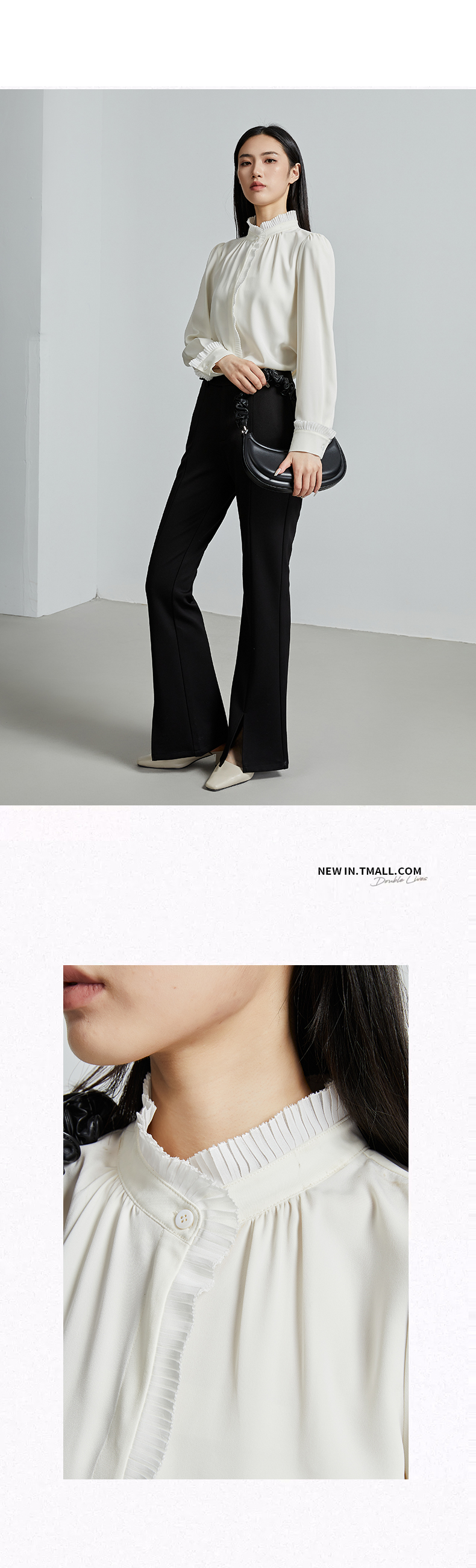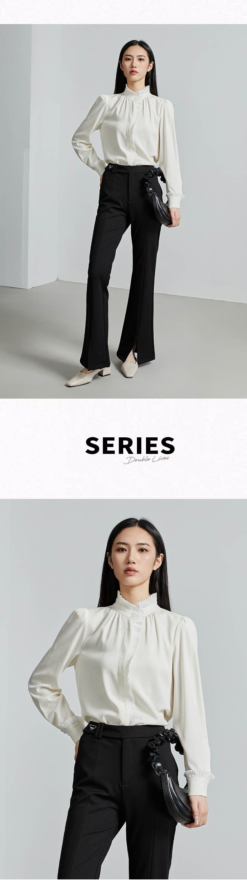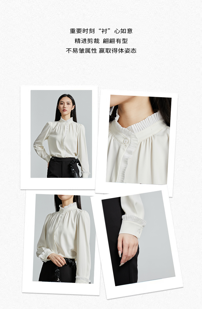 oldcolour秋季新款百搭立领时尚职业通勤长袖衬衫女P340105A1