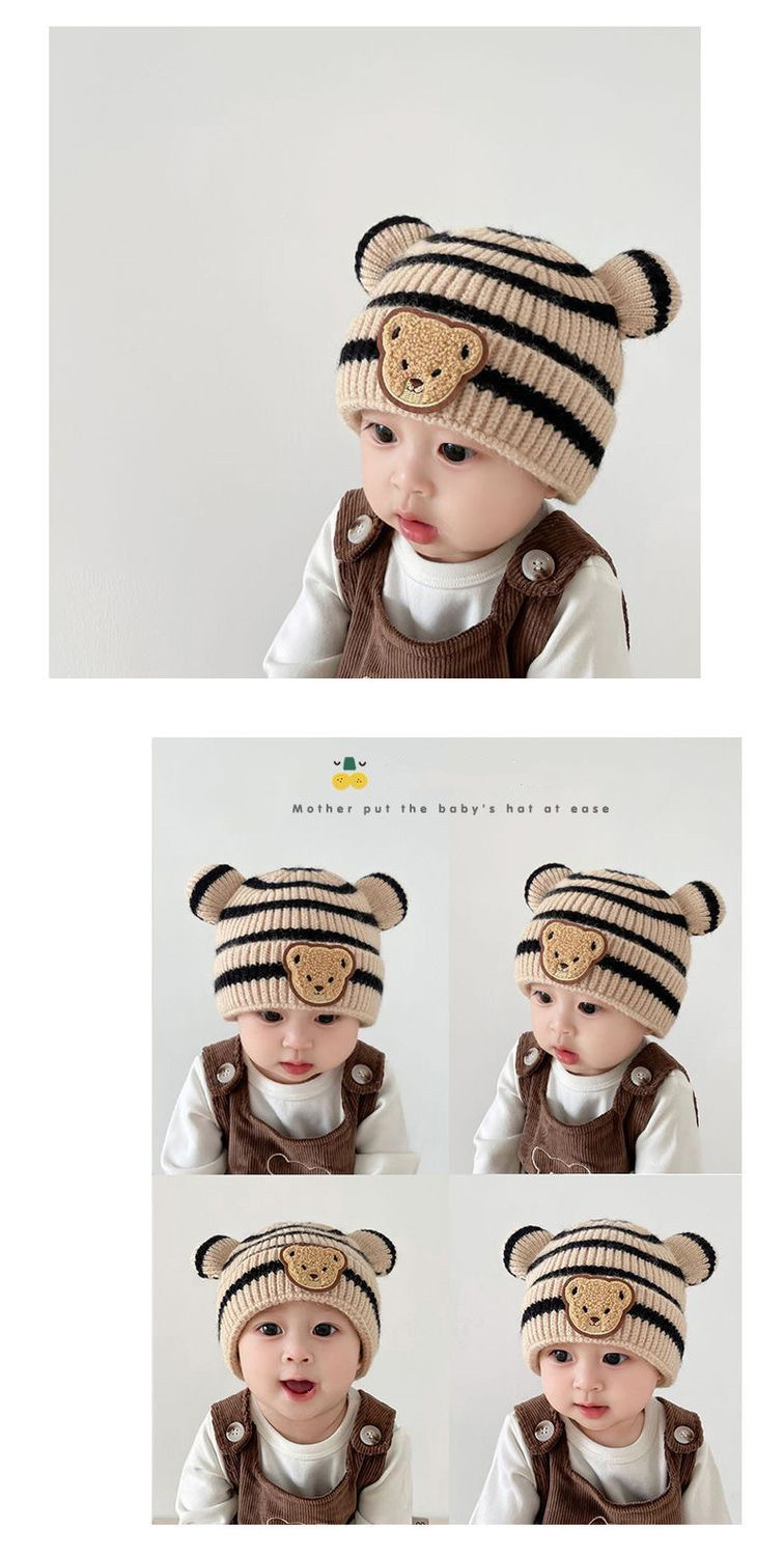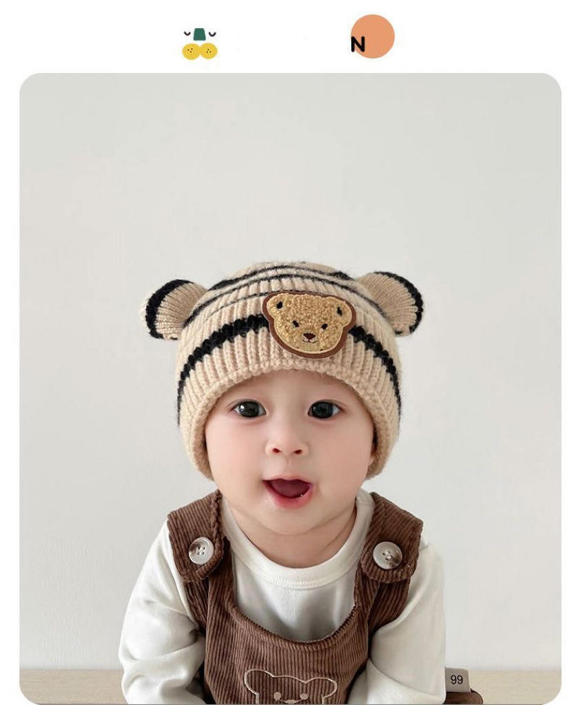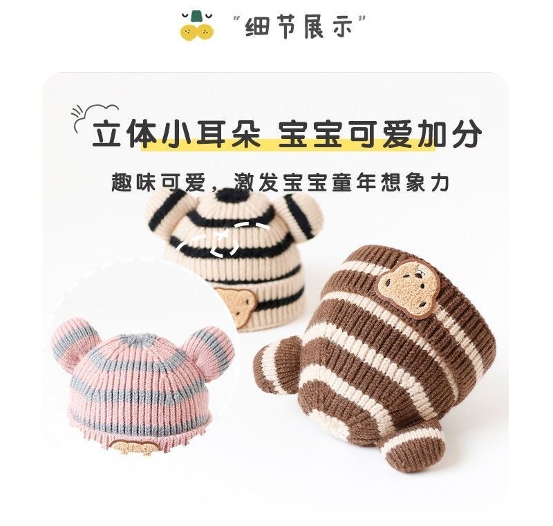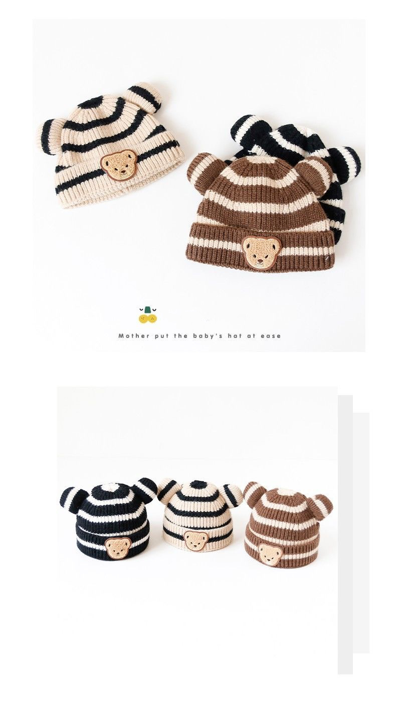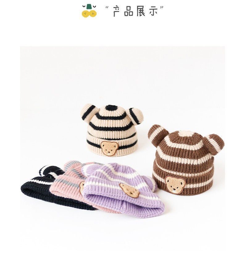 【ins风针织帽】韩版儿童针织帽,男女宝宝都适合,条纹熊头设计可爱满分lish#异业福利