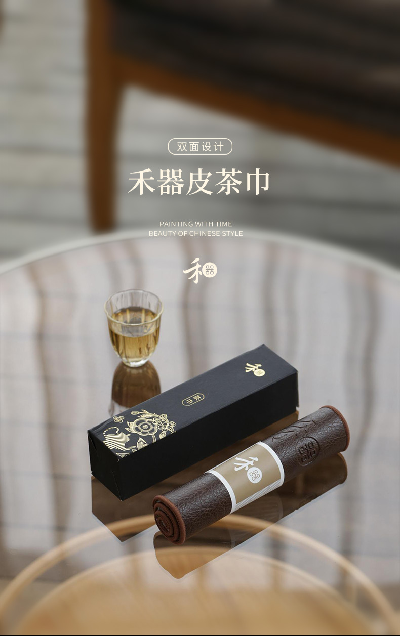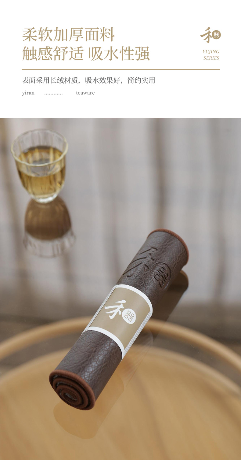 禾器新品皮茶巾高档复古双面禅意吸水简约茶布布垫精美中国风便携