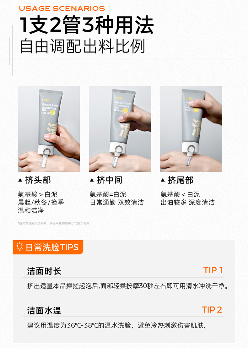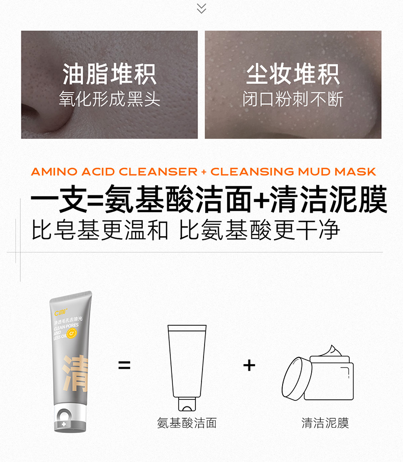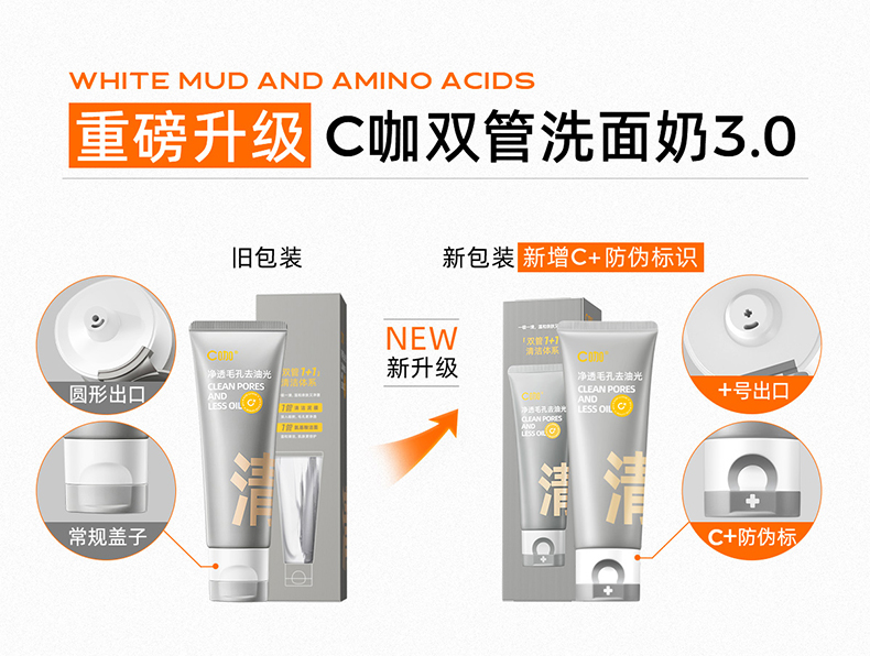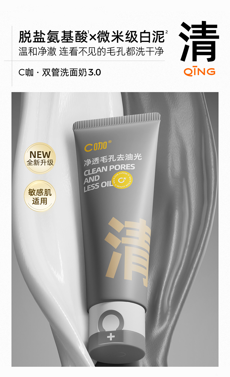 C咖氨基酸白泥清透净肤双管洁面乳 50g+50g 清洁控油,去黑头