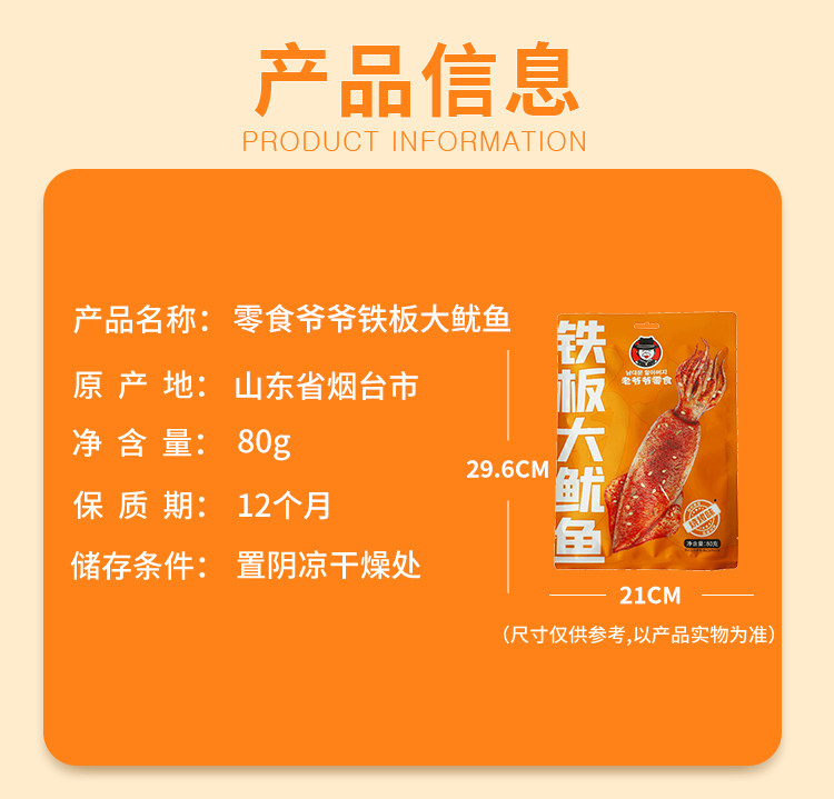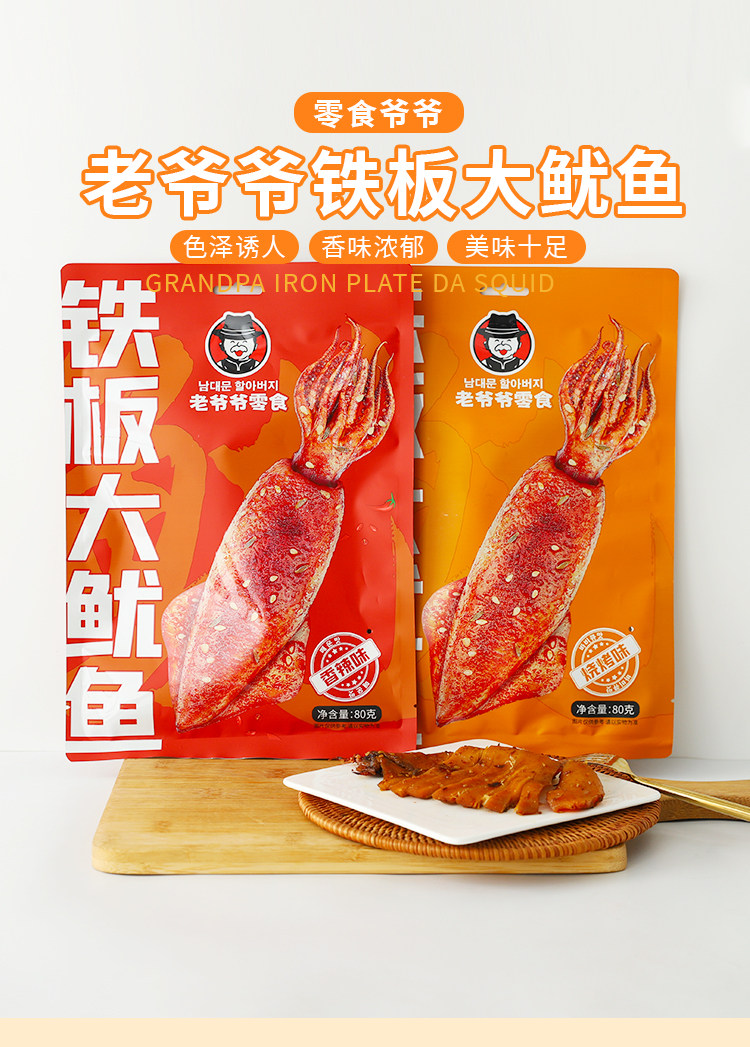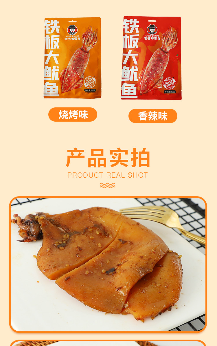 老爷爷零食铁板大鱿鱼80g(香辣/烧烤味)