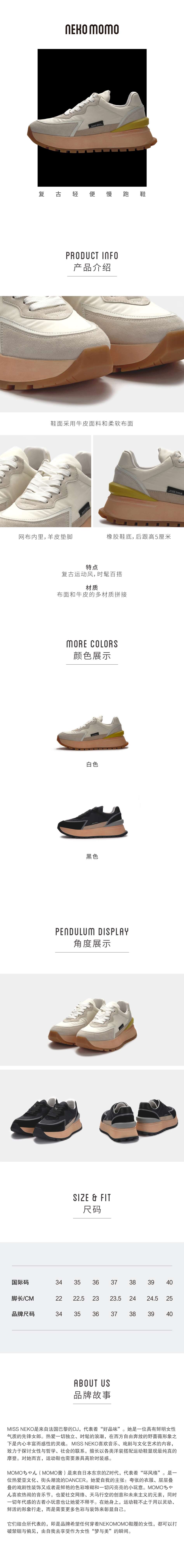 nekomomo2020秋季新款厚底圆头系带轻便防滑真皮百搭松糕女休闲运动老爹鞋