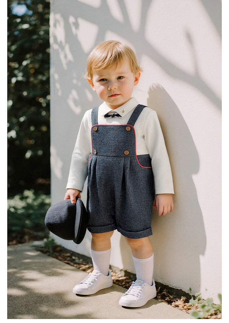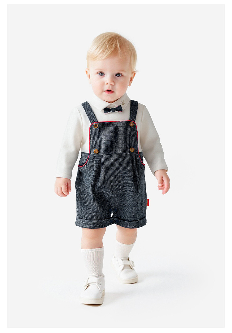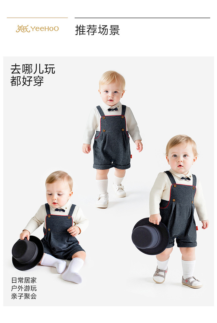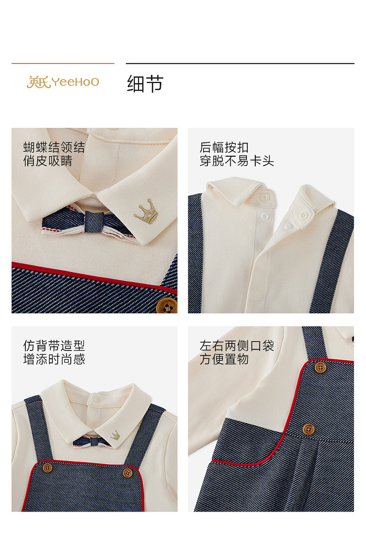 英氏新生儿衣服男宝宝帅气小王子仿牛仔哈衣爬爬服YRHAJ1S045A