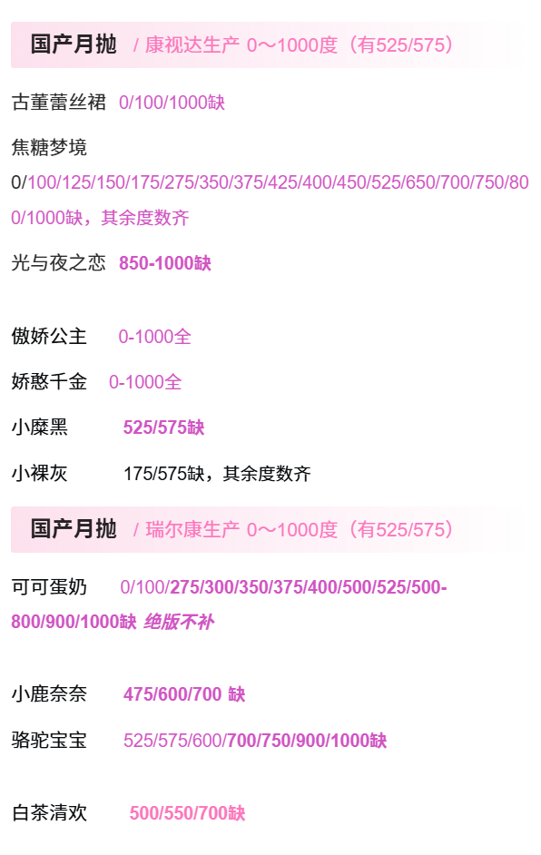 其余款式度数暂全
