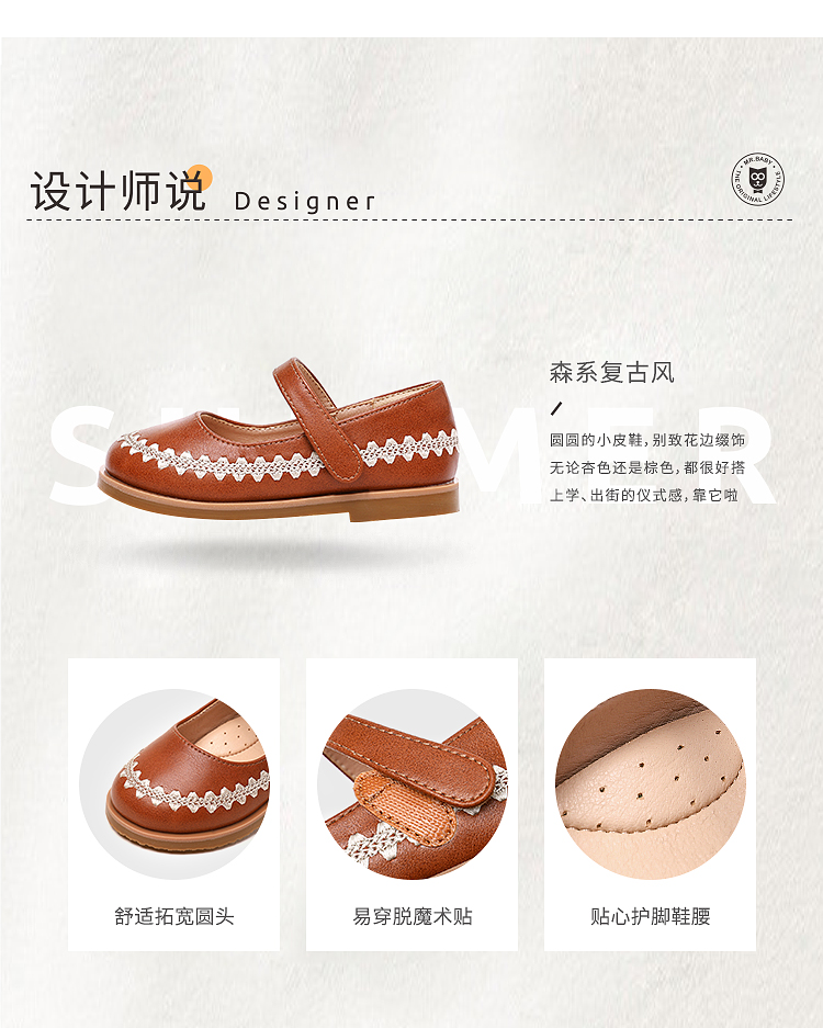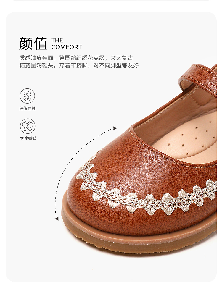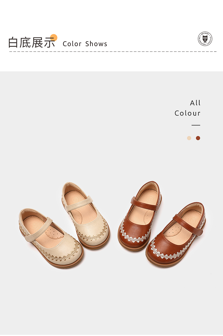 mrbaby女童皮鞋森系公主休闲鞋2023秋新款电绣花边玛丽珍防滑单鞋