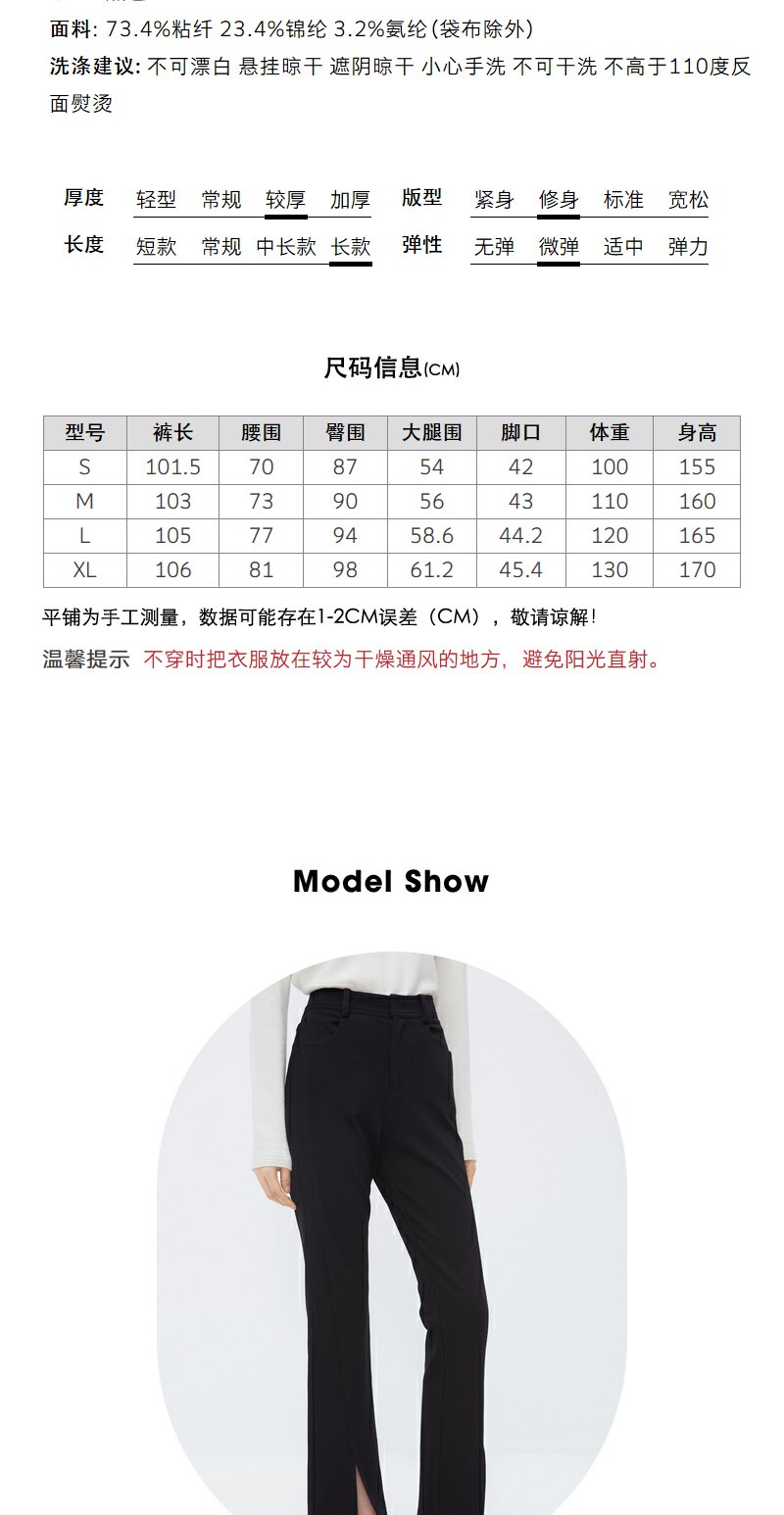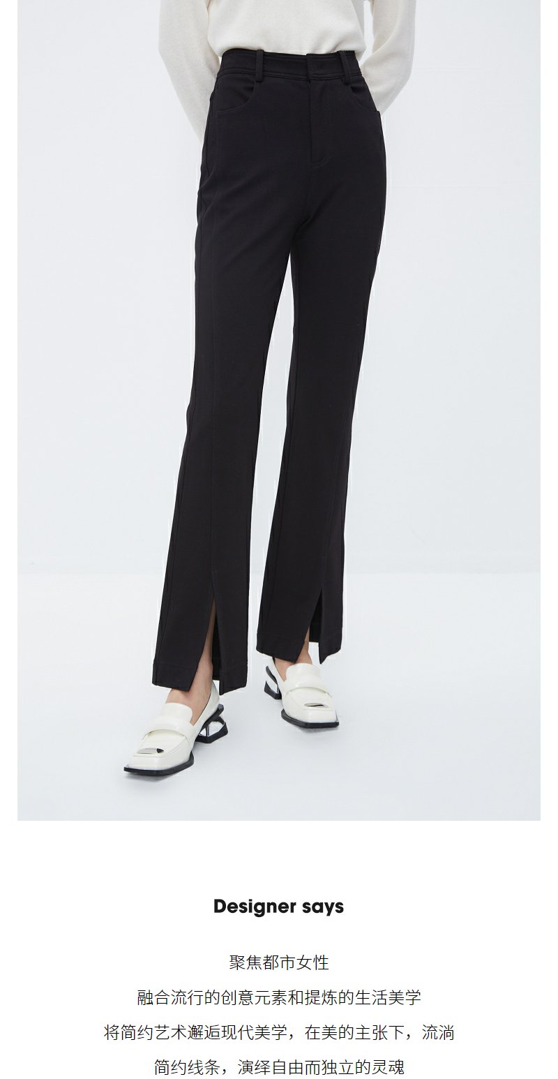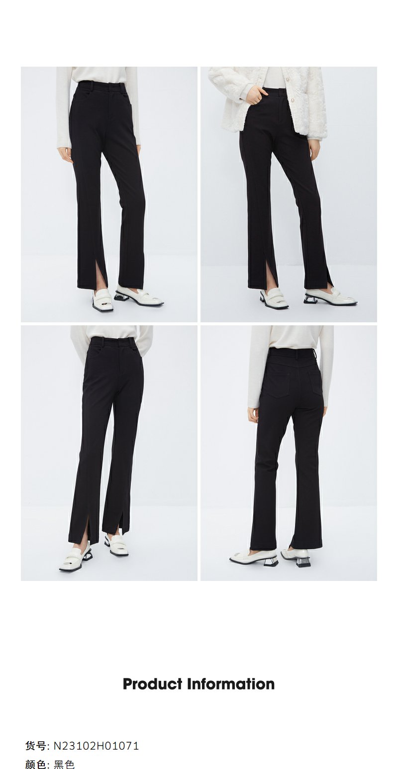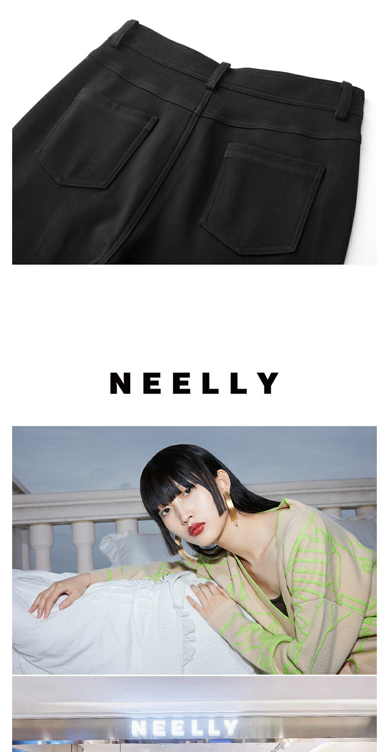 NEELLY纳俪商场同款黑色高腰牛仔微喇裤修身显瘦高级感开叉九分裤N24104H04565