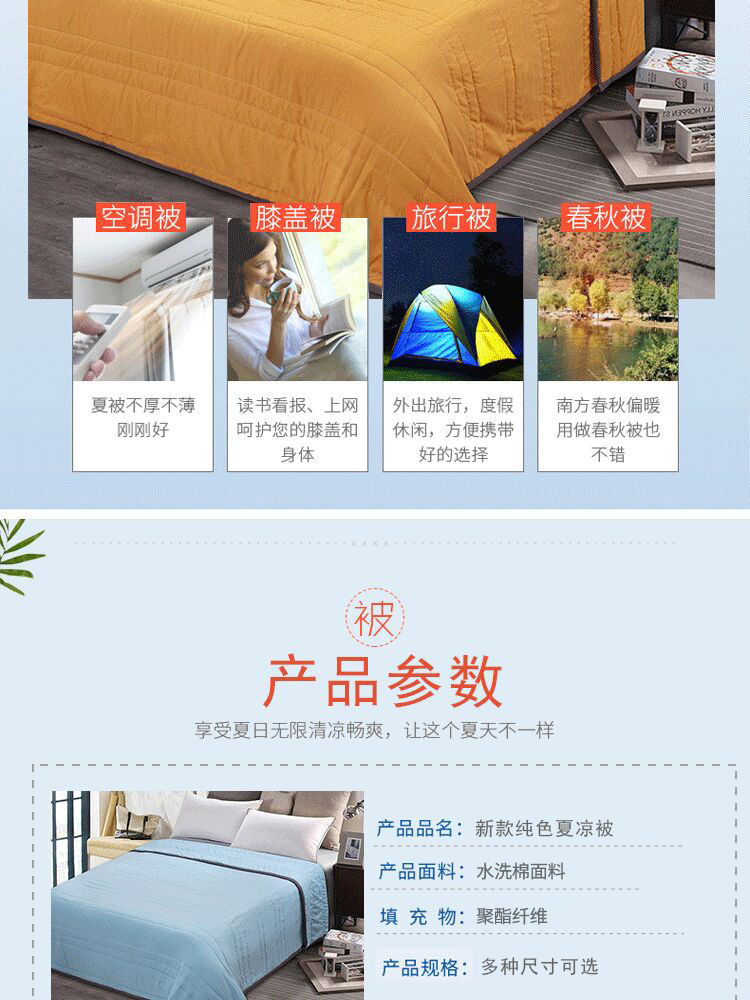 夏季纯色薄被子单人双人水洗棉夏凉被空调被芯可机洗wyt2
