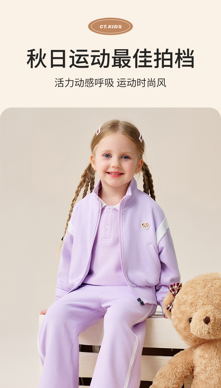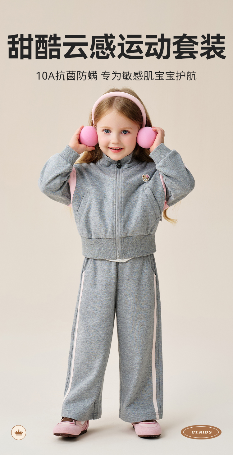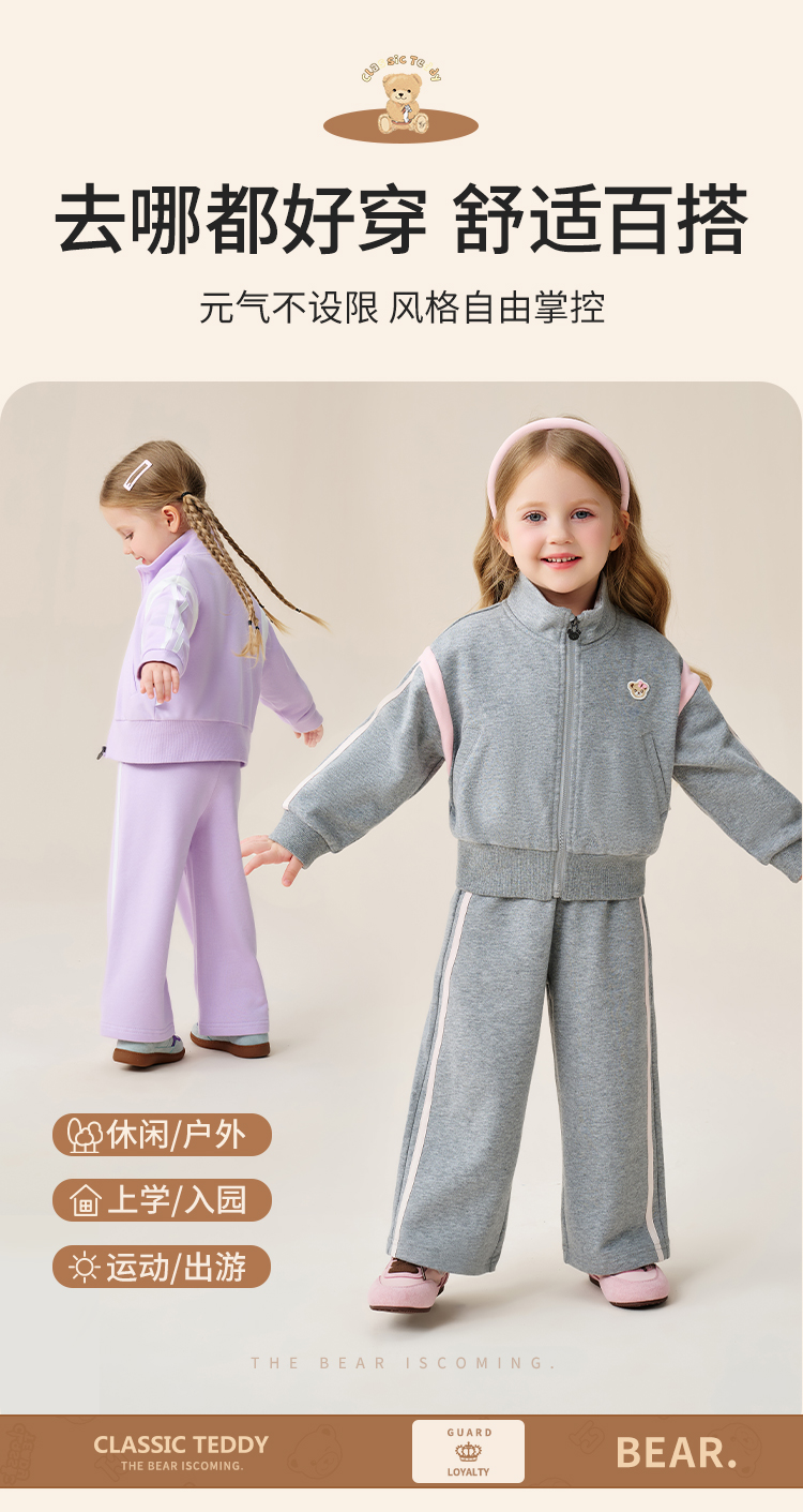 【两件套 】【90-140】【精典泰迪】10A抑菌女童休闲运动卫衣卫裤套装